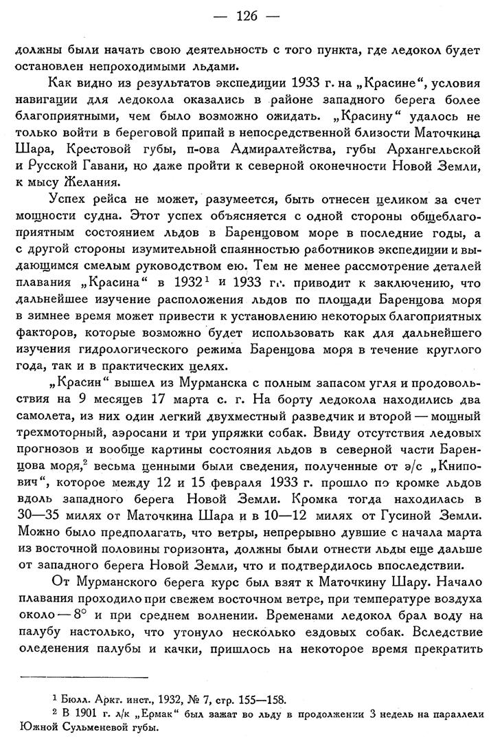 {1} Бюлл. Аркт, инст., 1932, № 7, стр. 155—158.{2} В 1901 г. л/к „Ермак" был зажат во льду в продолжении 3 недель на параллели Южной Сульменевой губы.— 127 —