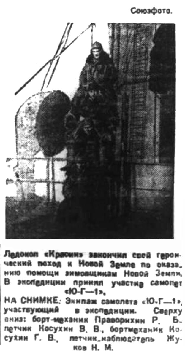 Экспедицией на „Красине" руководил М. И. Шевелев, ледоколом командовал Н. П. Легздин. Из научного персонала в экспедиции приняли участие гидролог Арктического института Л. П. Антонов, синоптик А. П. Гольцов и метеоролог Р. К. Омвинский.