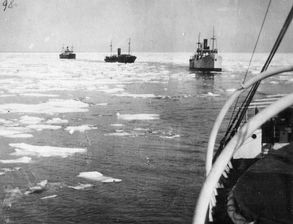 На случай осложнения обстановки и непредвиденных обстоятельств руководство экспедиции разделило ледокольные суда на две группы: