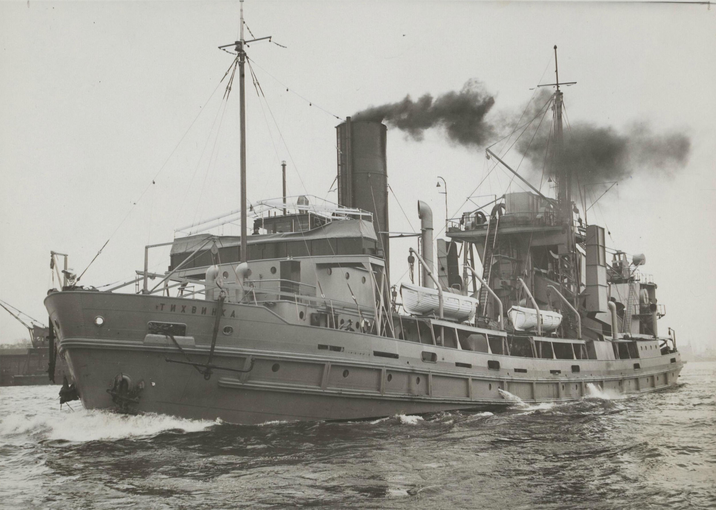На митинге перед выходом из Ленинградского порта экипаж теплохода объявил свой рейс стахановским имени Третьей Сталинской Пятилетки.
