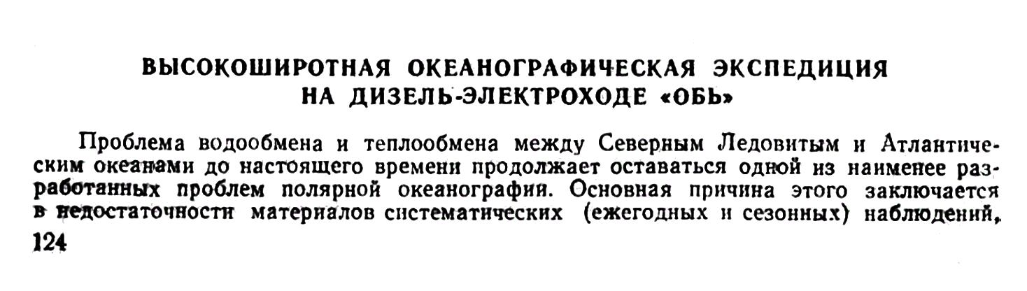 ВЫСОКОШИРОТНАЯ ОКЕАНОГРАФИЧЕСКАЯ ЭКСПЕДИЦИЯ НА ДИЗЕЛЬ-ЭЛЕКТРОХОДЕ «ОБЬ»