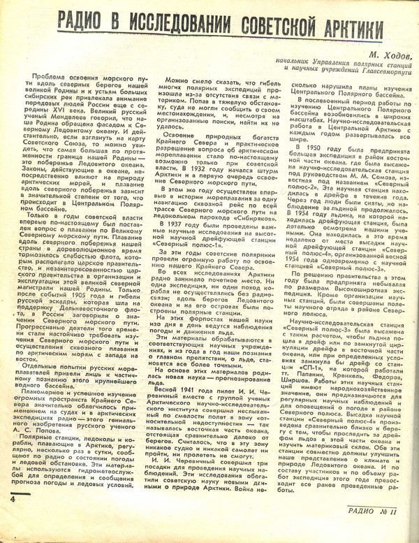 Читателям журнала «Радио» уже известно, что весной этого года в Центральном бассейне Советской Арктики Главным управлением Северного морского пути совместно с Академией наук СССР организованы две дрейфующие научные станции. На одной из этих станций «Северный полюс-4» работает наш коллектив.