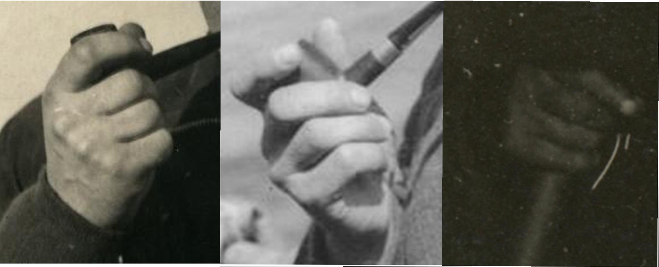 Я не травматолог, но мне кажется, что у персоны с "лопатой-трубой" отсутствует указательный палец.