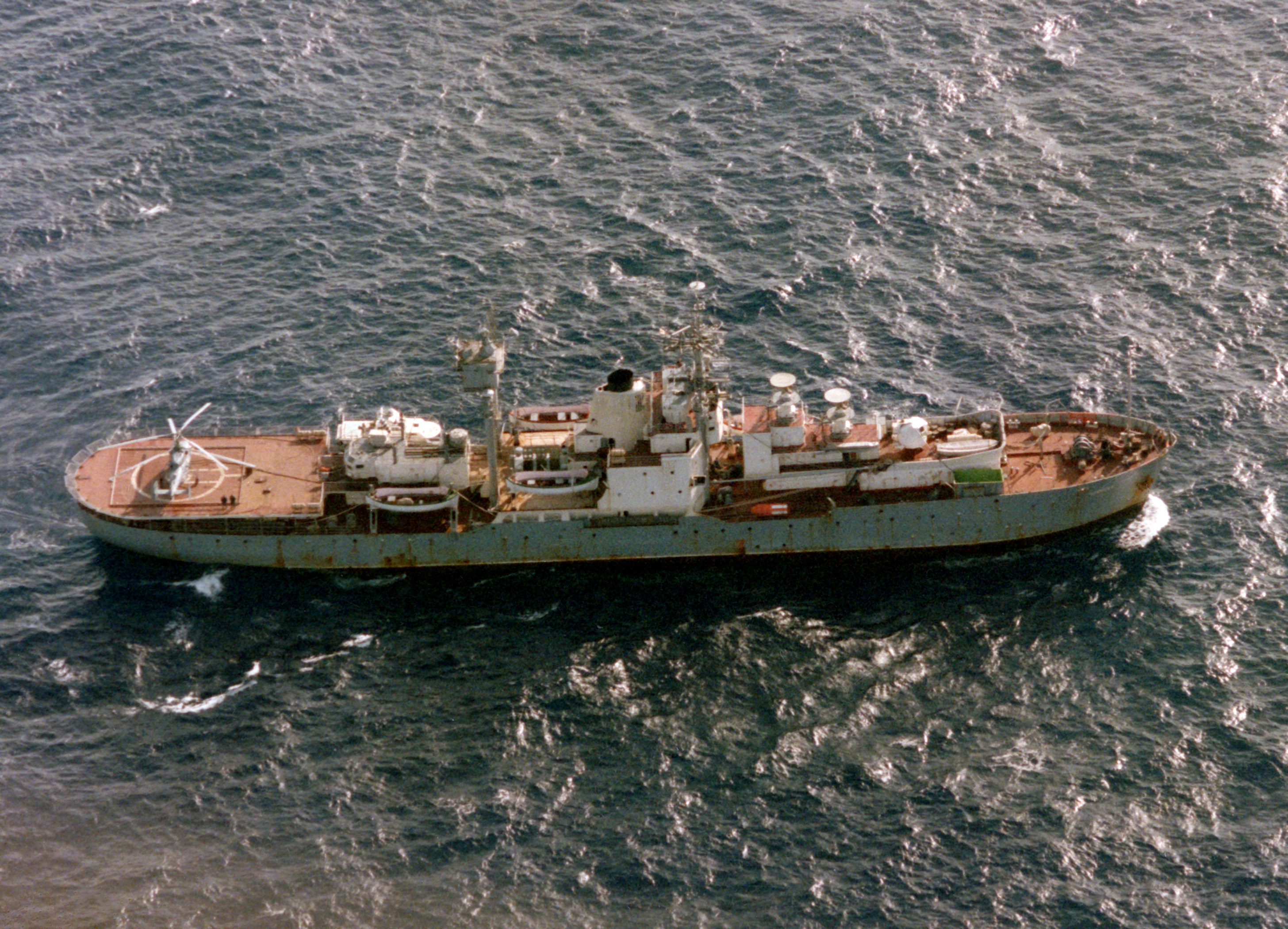- 4 КИКа - бывшие пароходы-углевозы Пр.В-31 (типа «Углегорск», класс «Донбасс», польской постройки - на Гданьской верфи в 1952-1957 гг.), «Сибирь» (бывший «Павлоград», командир - капитан 1 ранга В.А. Седов; на снимке слева с вертолётом Ка-25 на борту), «Сахалин» (бывший «Пермь», командир - капитан 1 ранга В.В.Зонов; на снимке справа с вертолётом Ка-25 на борту)
