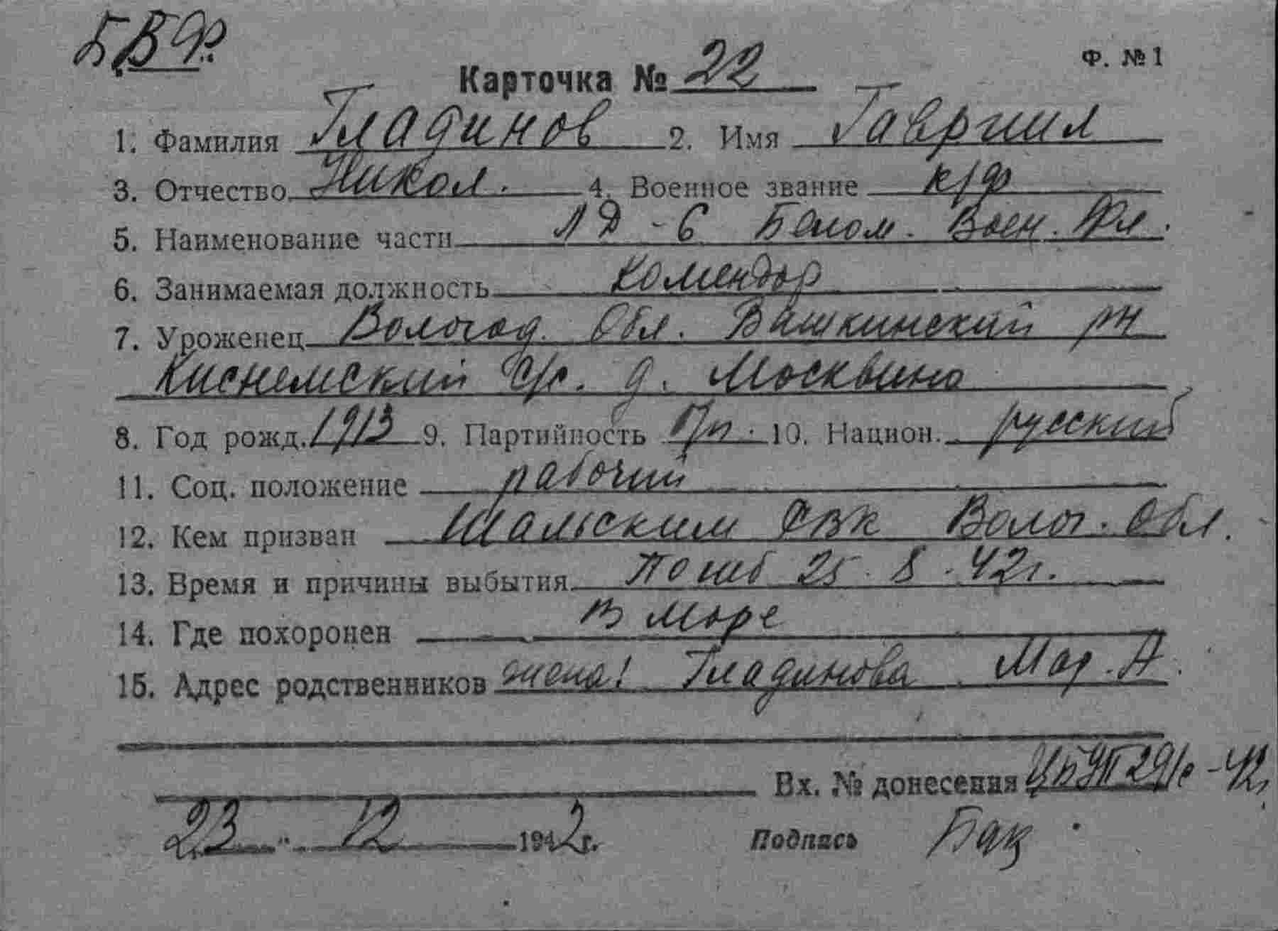 Дата и место призыва __.__.1941 Шольский РВК, Вологодская обл., Шольский р-н