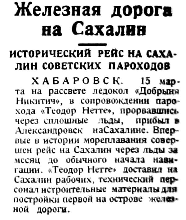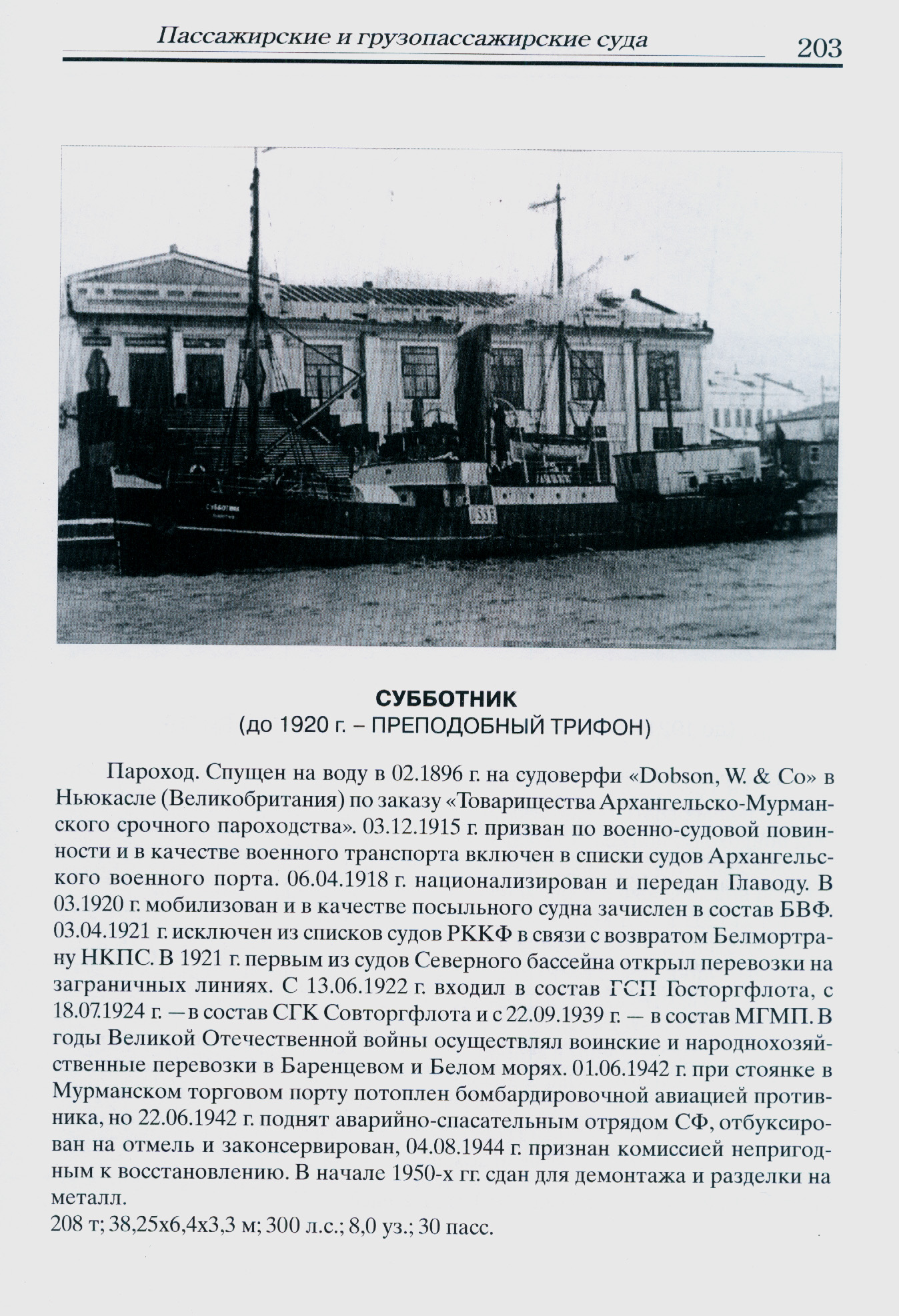 Каждое из них — эпоха в завоевании арктического севера. У бетонной пристани пришвартован черный, кургузый «Таймыр». С двойником своим «Вайгачем» в 1913 году с отрядом Вилькицкого прошел он великим северным путем из Владивостока в Архангельск — пробирался сквозь вечные льды. «Вайгач» не выдержал, затонул. А «Таймыр» до сих пор проделывает тяжелейшие переходы по Карскому и Баренцову морям.