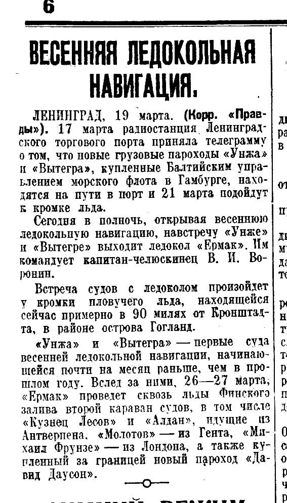 Весенняя ледокольная навигация//Правда,1935, № 78 (6324), 20 марта