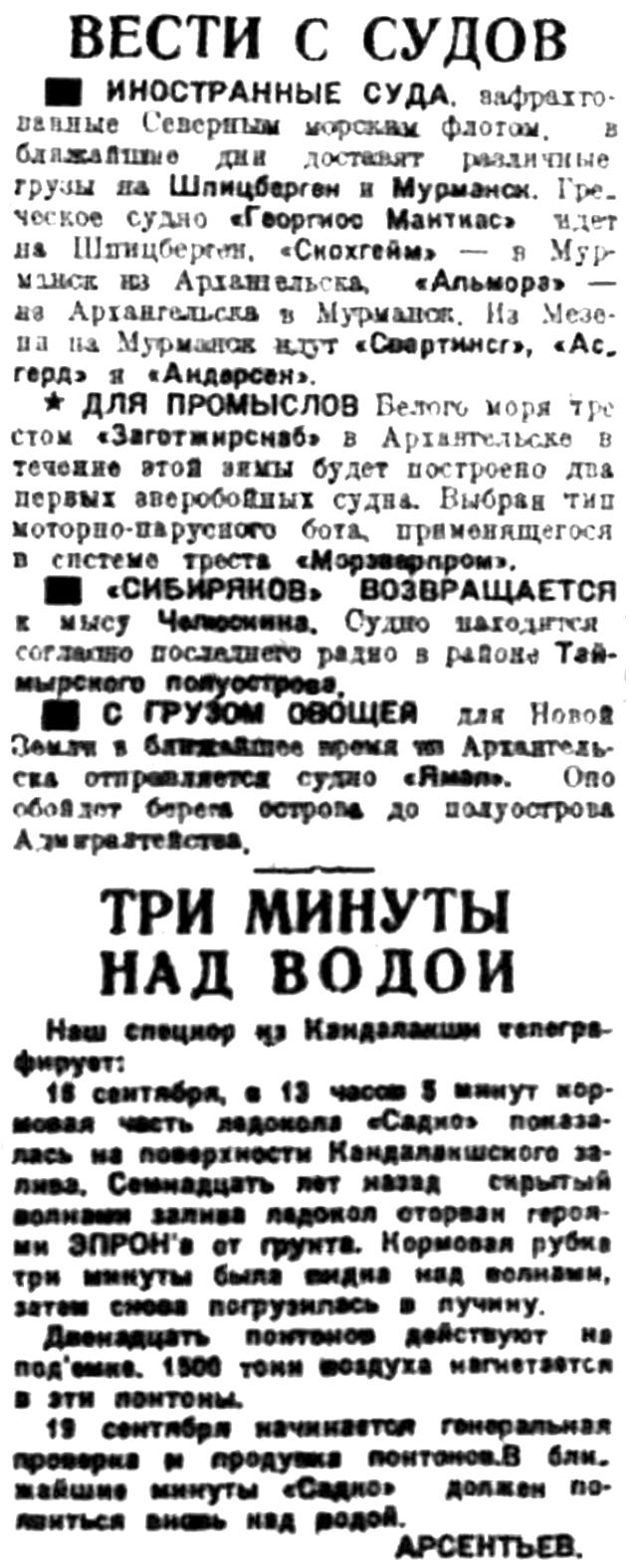 Правда Севера, 1933, № 217, 20 сентября - ВЕСТИ С СУДОВ. САДКО.jpg