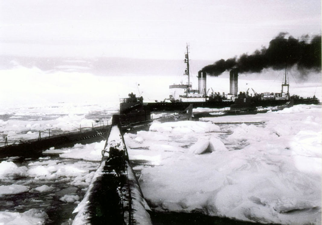 Для обеспечения ледового перехода в интересах ПЛ на одном из транспортов разместилась аварийная водолазная партия, состоявшая из штатных водолазов бригады.