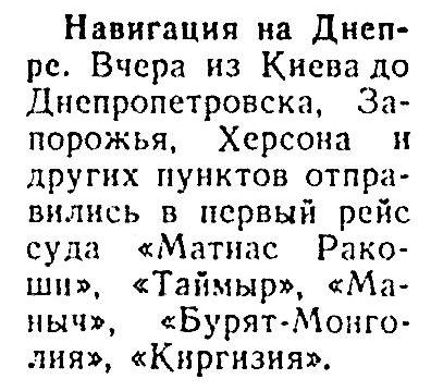 В 1954 г. весь переход занял 88 суток. С 10 июля по 5 октября корабли прошли 6680 миль за 793 ходовых часа со средней скоростью 8,5 уз.