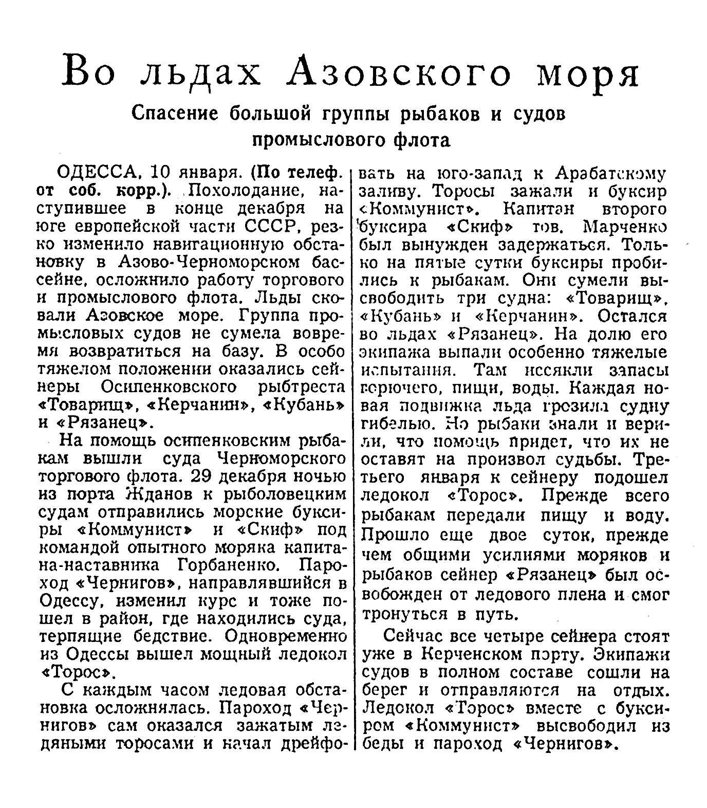 ... По одному из самых молодых в стране морей — Нарвскому морю шел пассажирский пароход «Борец». В двух километрах от берега он застрял во льду. Поломалась лопасть винта. Ледокольных средств на судне не было; 50 пассажиров с помощью команды корабля добрались по льду до берега.