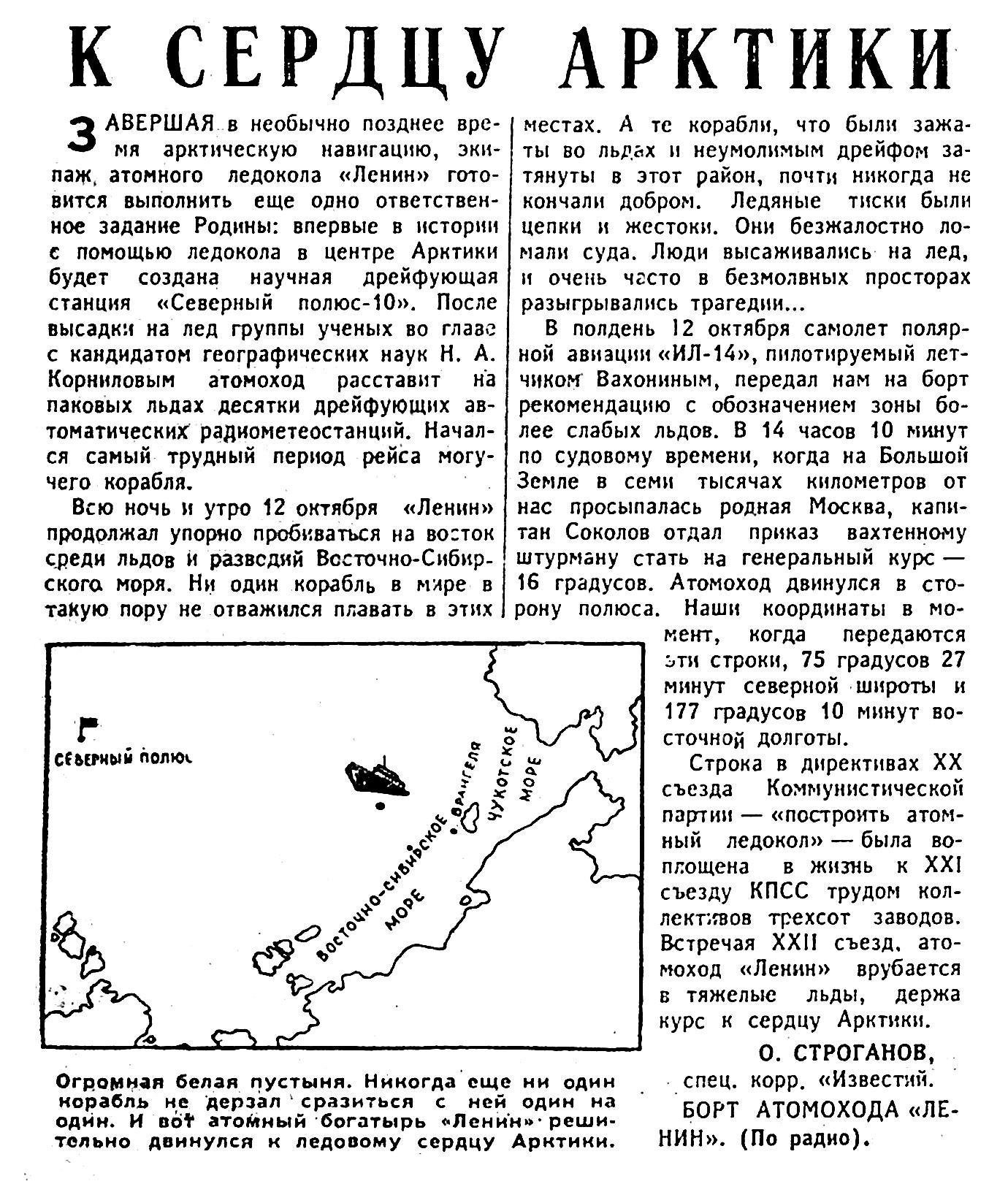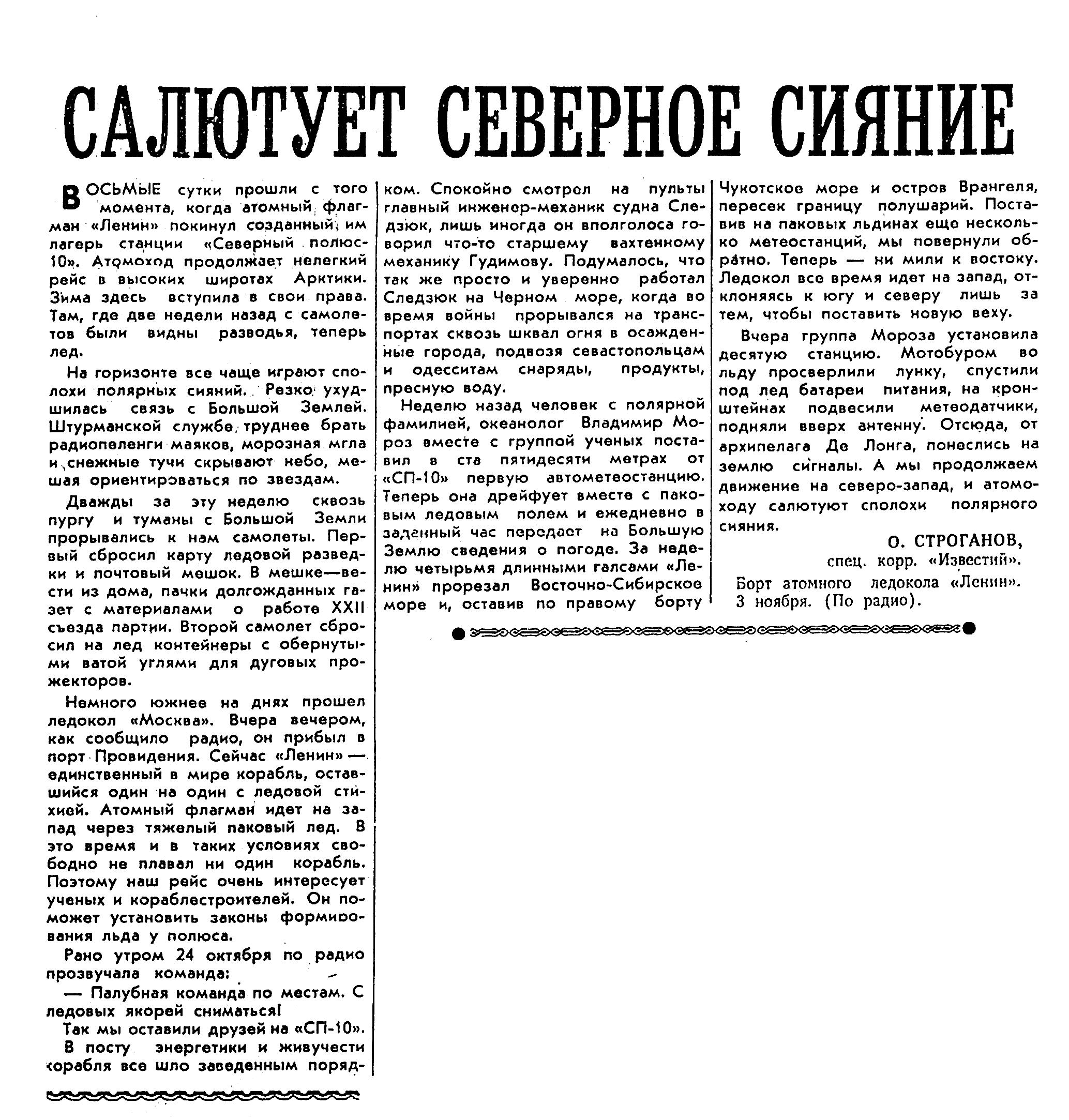 СЕВЕРНЫЙ ЛЕДОВИТЫЙ ОКЕАН. 10 ноября 1961 года. (По радио).