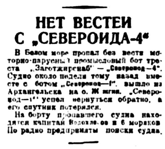 Правда Севера, 1933, № 248, 27 октября - СЕВЕРОИОД-4 ПРОПАЛ.jpg