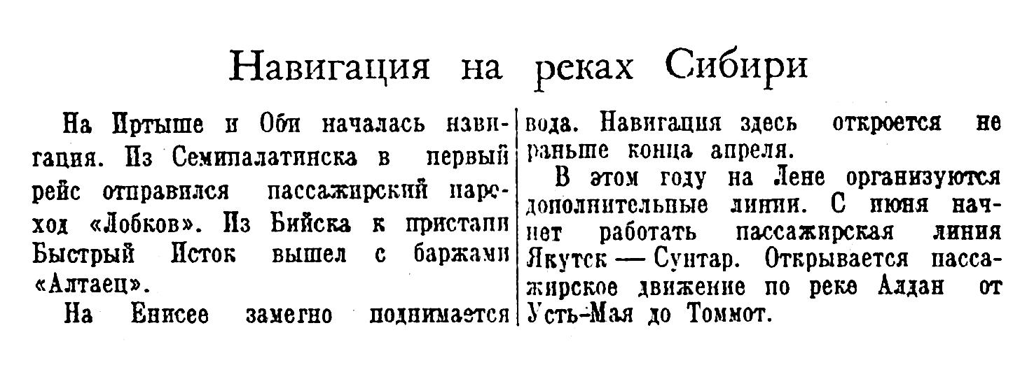 базы, обеспечить ранний выход гидрографических судов. В целях улучшения работы флота Главсевморпути принял решение об организации арктического пароходства в Архангельске на базе реорганизованной морской конторы в Мурманске. Морская контора во Владивостоке также была преобразована в пароходство {1}. Были пересмотрены скорости движения судов (с 145,1 мили в сутки до 156,8 миль), что должно было дать экономию средств. Большая подготовительная работа проводилась непосредственно в портах отправления. Суда избавлялись от излишнего такелажа и материалов. Пароходства пересматривали свое финансовое хозяйство, заключали договора на фрахт судов, составляли план перевозок.
