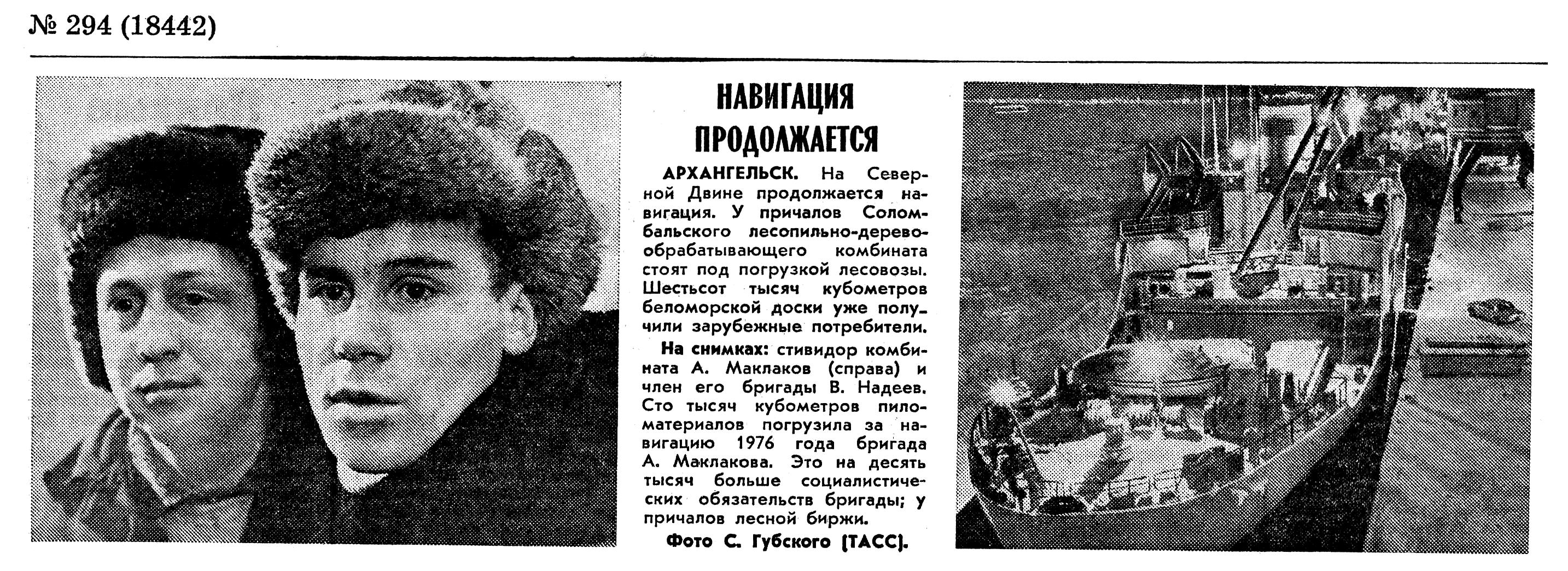 Известия, 1976, № 294 (18442), 14 декабря.