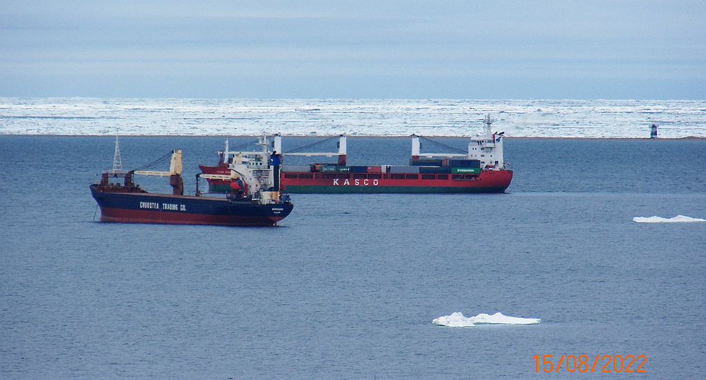 Кроме прошлого сезона в Певеке был дежурный ледокол. В 21-м ограничились спасателем, он убежал при первых признаках ухудшения погоды, льда ещё не было. Сейчас же "Капитан Орлов" висит неделю у Айона. Час назад к нему подоходил "Финвал", было какое-то шевеление, но прошёл дальше. Вероятно, из экономии Ленское пароходство хочет помочь ему "Капитаном Бородкиным", он уже на подходе.