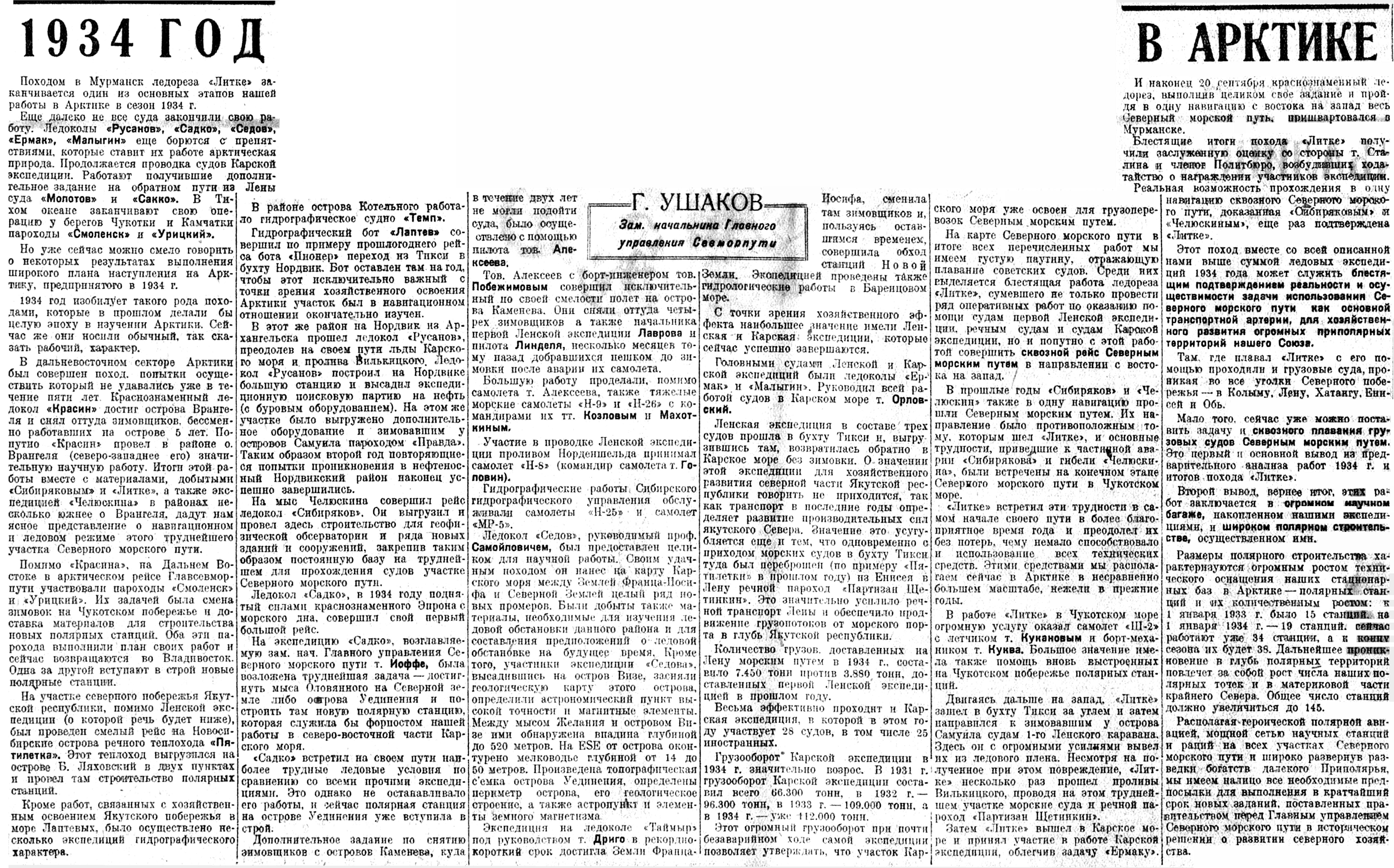 Но уже сейчас можно смело говорить о некоторых результатах выполнения широкого плана наступления на Арктику, предпринятого в 1934 г.