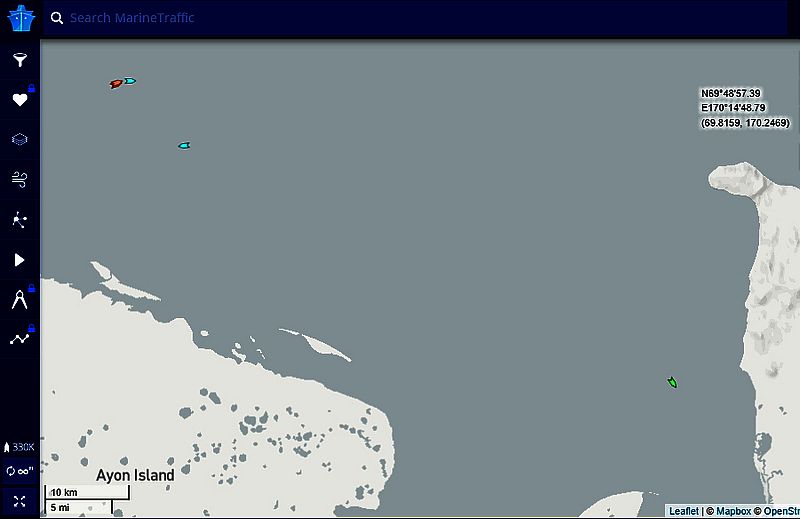 Прямо сейчас наблюдается встреча каравана "Арктики" и "Новороссийска". Стрелка у Янраная это "Северный Проект". Ставят на то, что "Арктика" зайдёт только на обратном, а сейчас проведёт креветочника. Небедные люди эти рыбачки:
