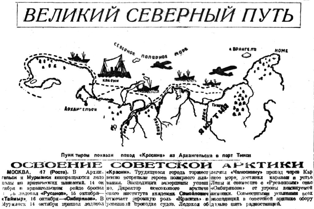 Навигация 1933 г. характеризуется обширными задачами, которые себе поставили Главное Управление Северного морского пути и Всесоюзный Арктический институт — основные органы, работающие в настоящее время в Советской Арктике.