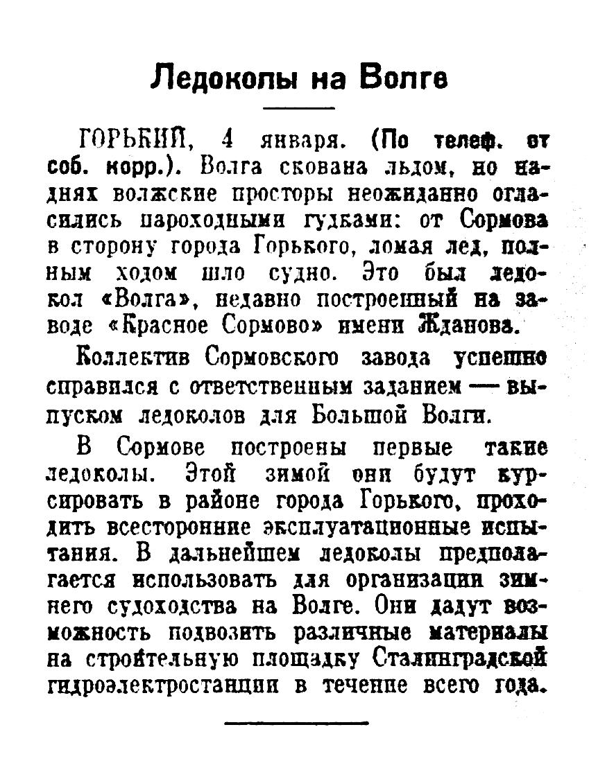 Каховская пристань приняла первые тысячи тонн грузов для строительства электростанции. Бригады каховских грузчиков тт. Халявкина и Слепова, соревнуясь в честь 1 мая, досрочно обрабатывают грузы и ежедневно выполняют по полторы — две нормы.