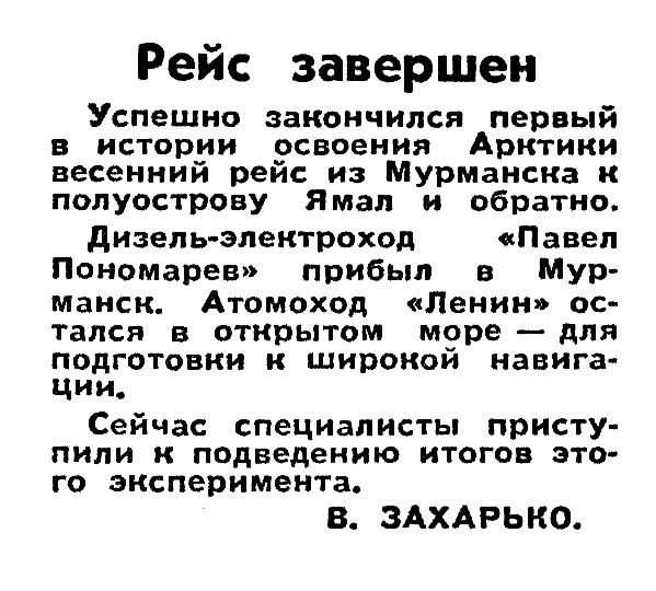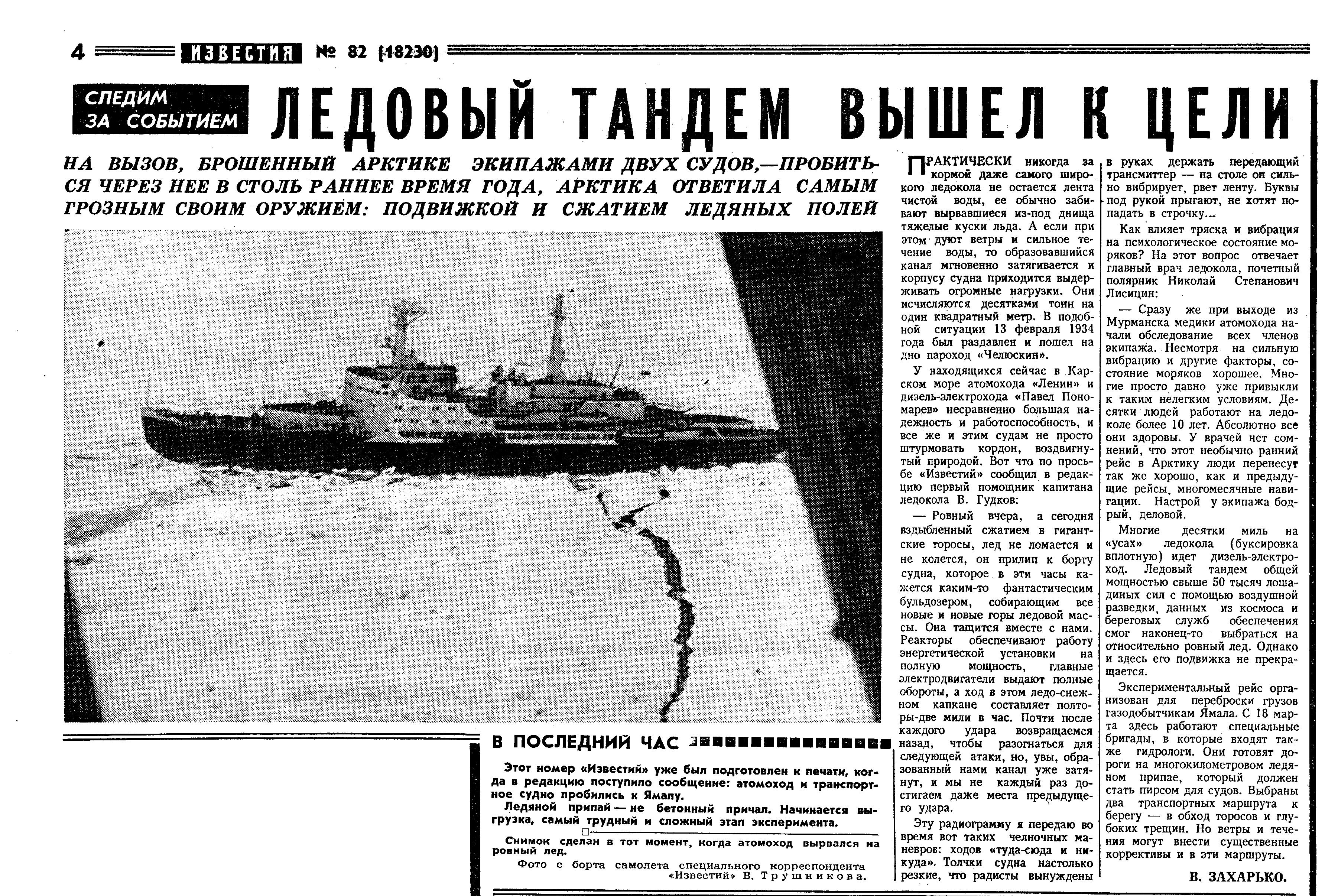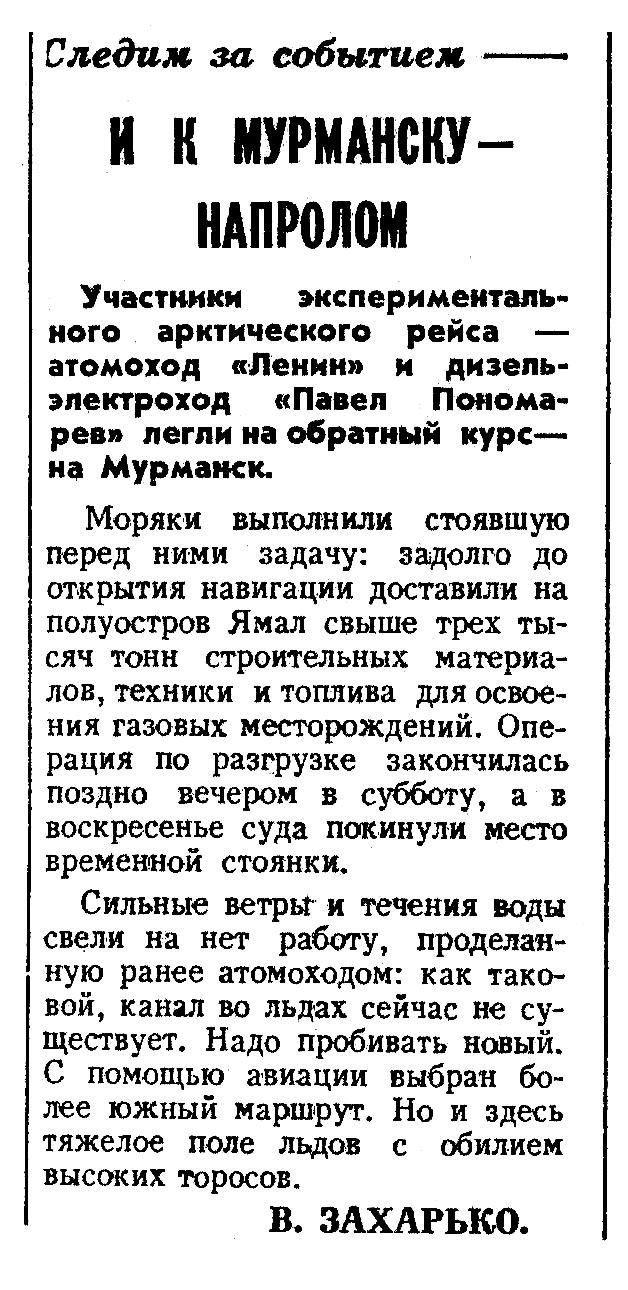 Этот номер «Известий» уже был подготовлен к печати, когда в редакцию поступило сообщение: атомоход и транспортное судно пробились к Ямалу.