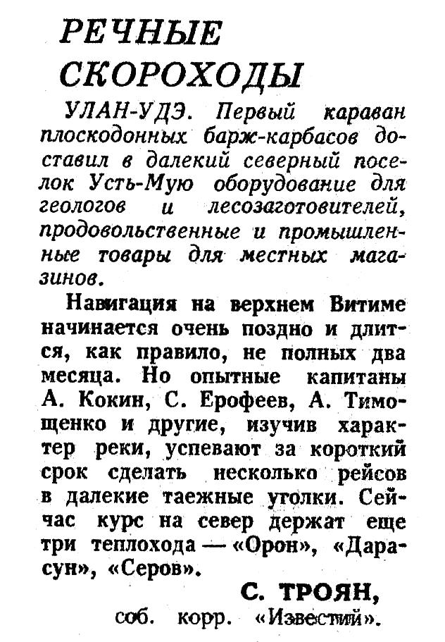 Этот рейс открывает новую главу во всей летописи грандиозных предприятий по освоению советскими людьми огромных просторов от Белого моря до Берингова пролива.