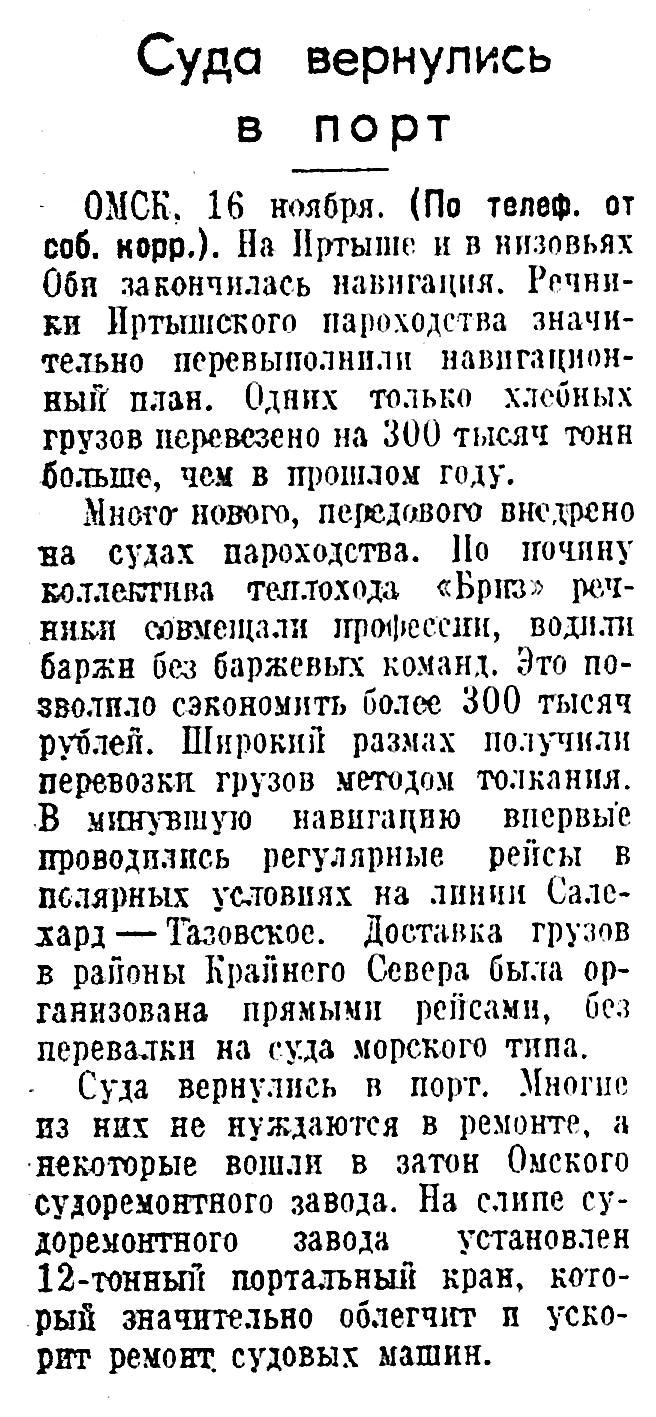 Исполком Нарвского городского Совета за самоотверженный труд по предотвращению аварии на водонасосной станции объявил А. Виноградову благодарность и выдал ему денежную премию. Тов. Чирикову объявлена благодарность.