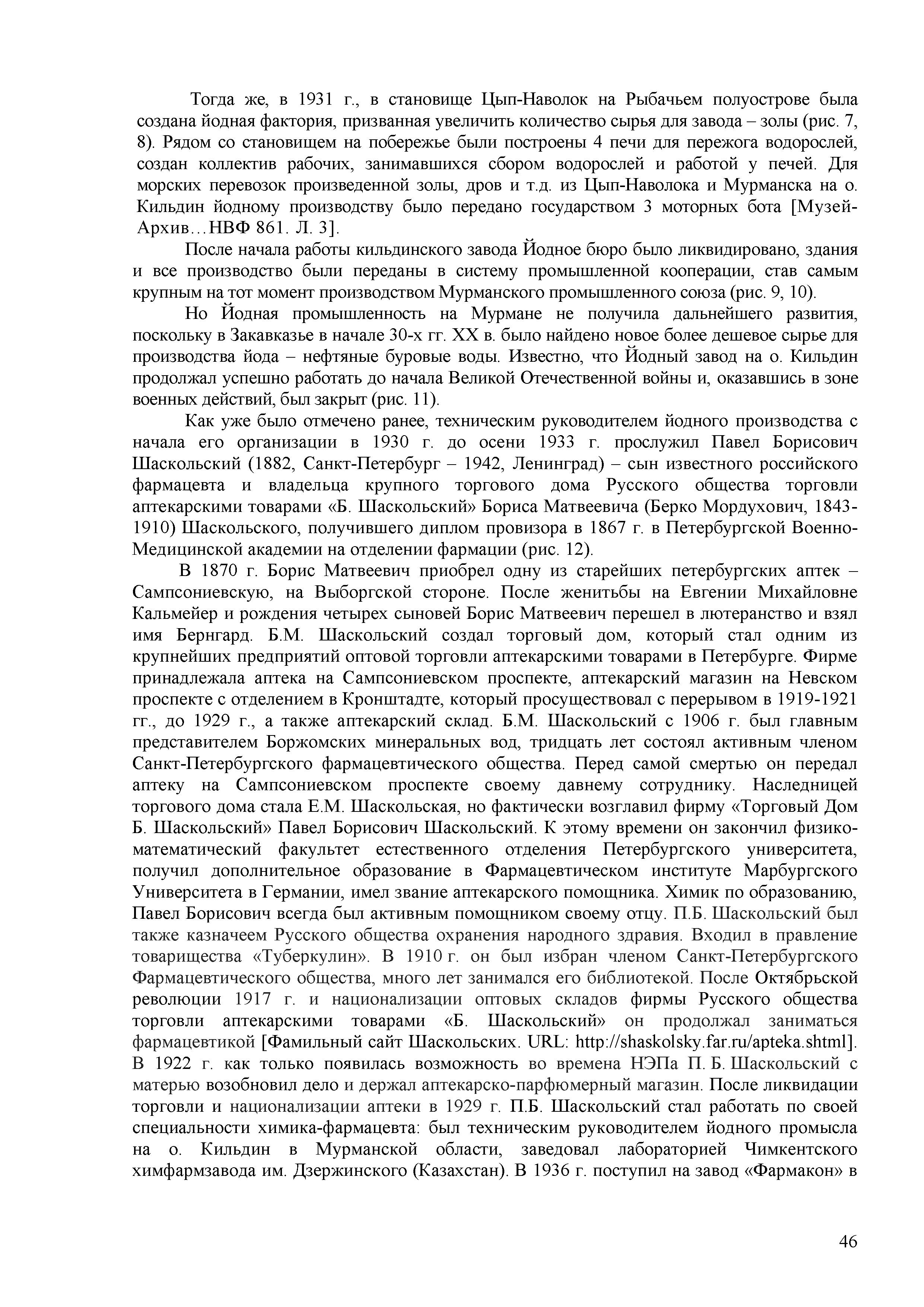 Статья посвящена истории организации йодного производства на о. Кильдин в Кольском Заполярье в 1930-х гг. по материалам фонда П.Б.Шаскольского Музея-Архива истории изучения и освоения Европейского Севера ЦГП КНЦ РАН