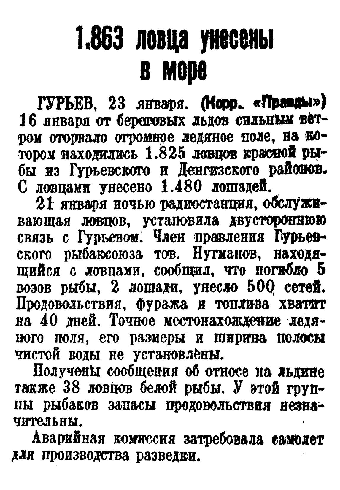 Правда, 1936, № 119 (6725), 29 апреля.15 охотников-эскимосов унесены в море