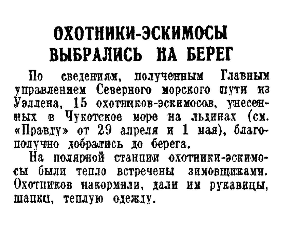 Известия,1936, №104 (5961), 5 маяСПАСЕНИЕ ОХОТНИКОВ-ЭСКИМОСОВ