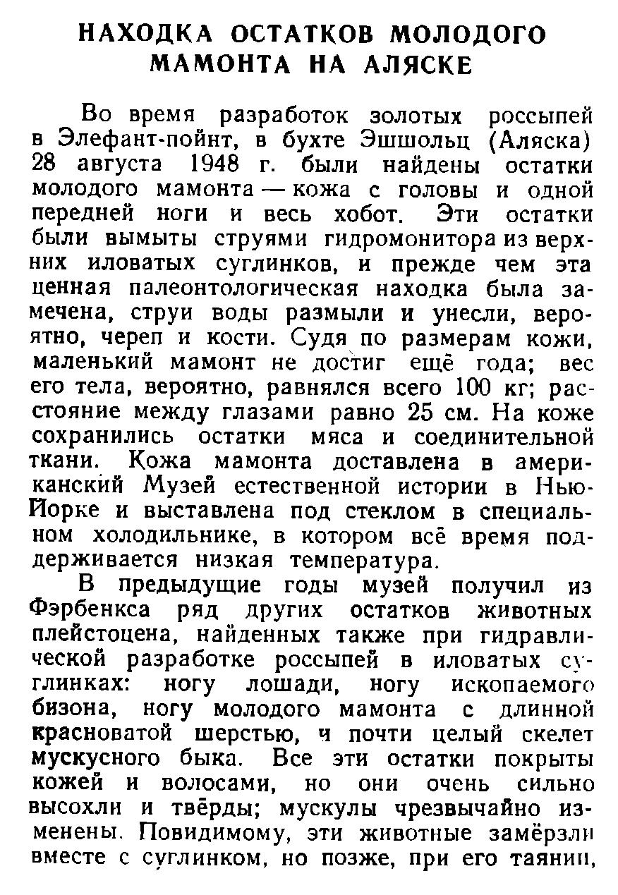 1) П. А. Портенко, В. А. Тихомиров и А. И. Попов. Первые результаты раскопок таймырского мамонта и изучения условий его залегания (Работы Таймырской комплексной экспедиции Академии Наук СССР). Зоологический журнал, т. XXX, вып. 1, Москва, 1951, стр. 3—16.-120-