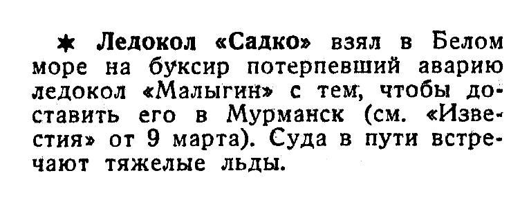 1) В связи с неисправностью руля у "Малыгина" в начале первого рейса Рудаков пересел на "Садко", а Эверт во втором рейсе участвовал на "Седове" с Отпущенниковым.— 390 —