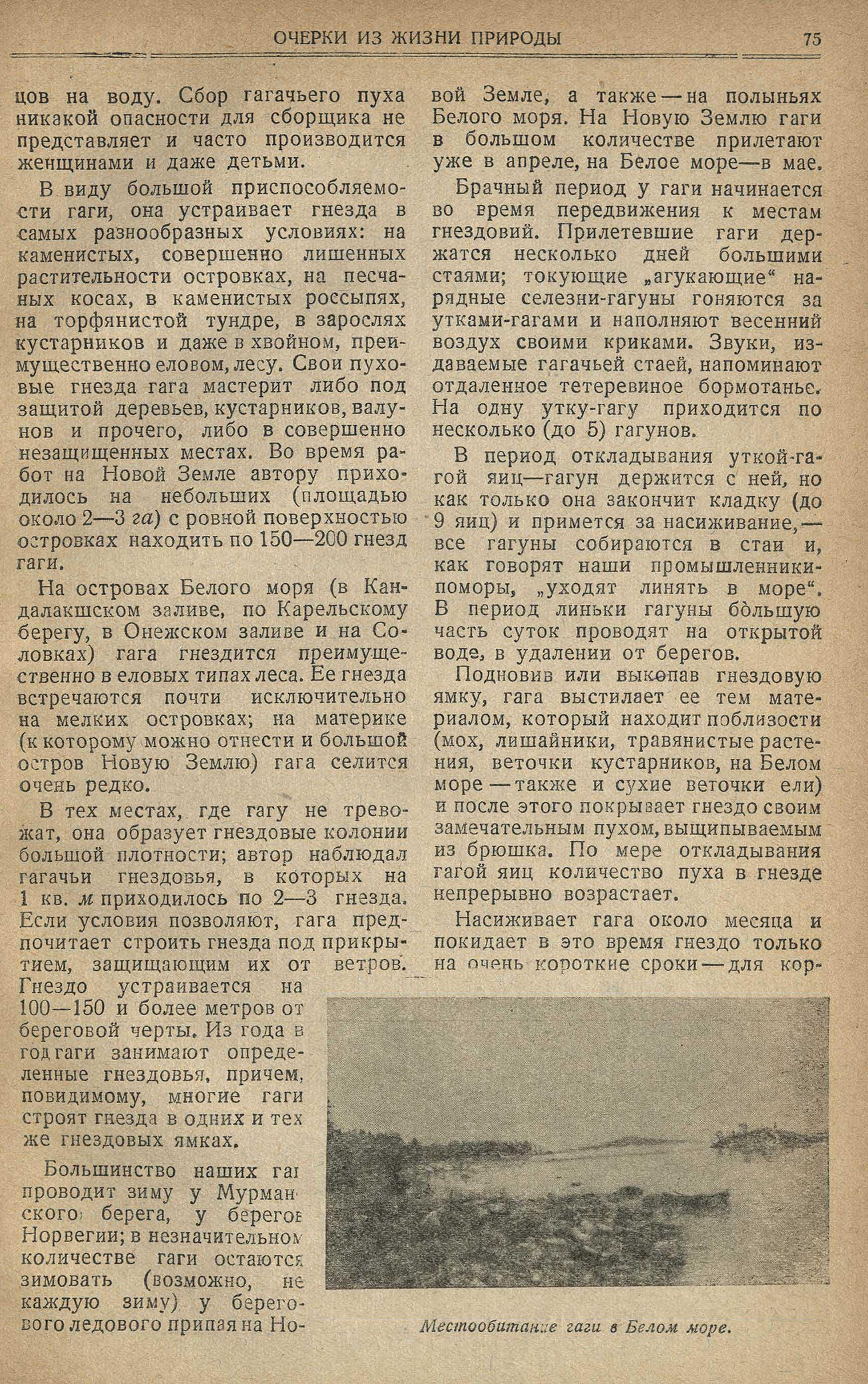 В настоящей статье мы будем говорить о гаге обыкновенной, особенно ценной для нас как объект хозяйства, благодаря присущей ей биологической особенности гнездиться большими колониями.
