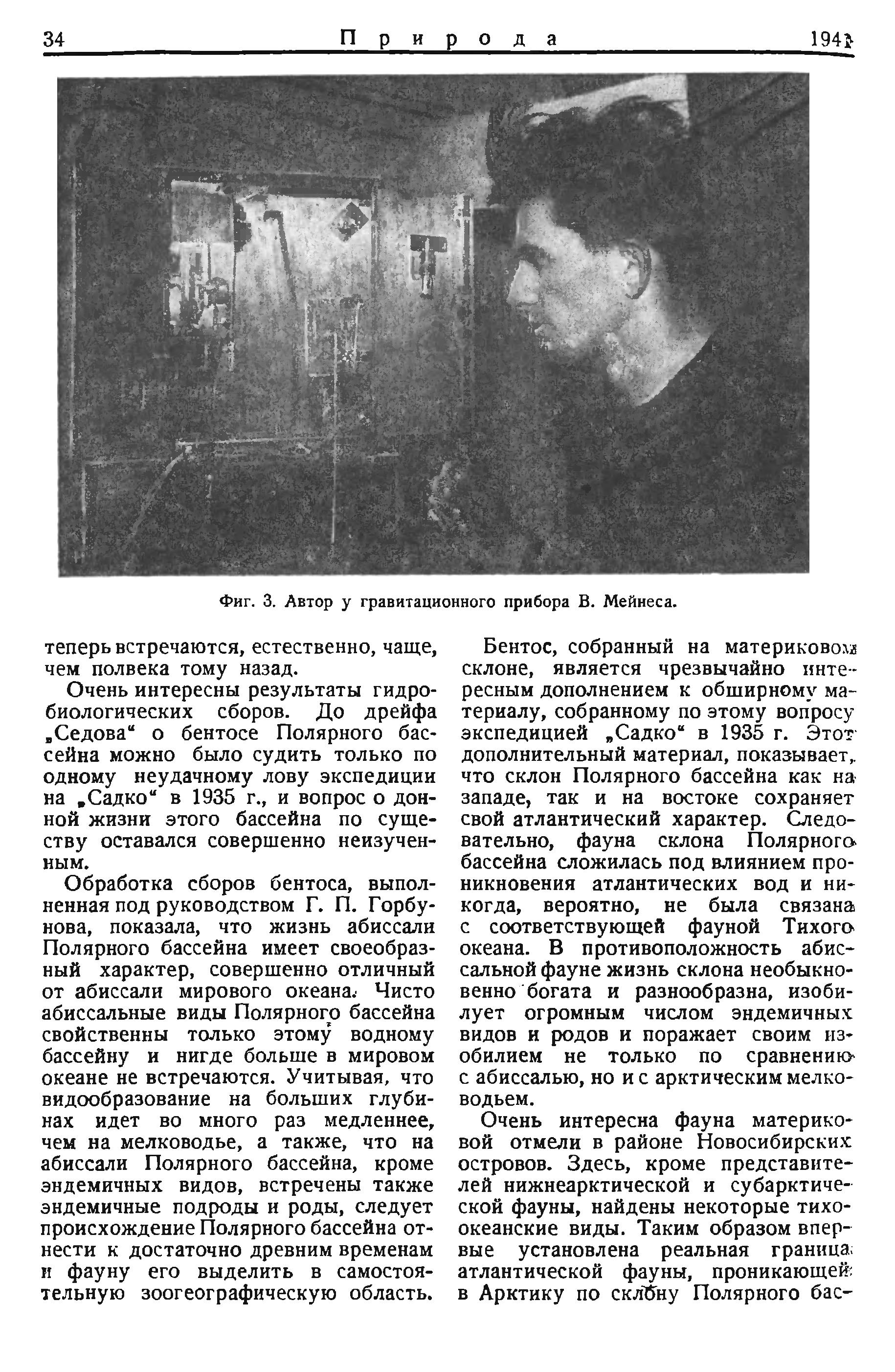 Очень интересны результаты гидробиологических сборов. До дрейфа «Седова» о бентосе Полярного бассейна можно было судить только по одному неудачному лову экспедиции на «Садко» в 1935 г., и вопрос о донной жизни этого бассейна по существу оставался совершенно неизученным.