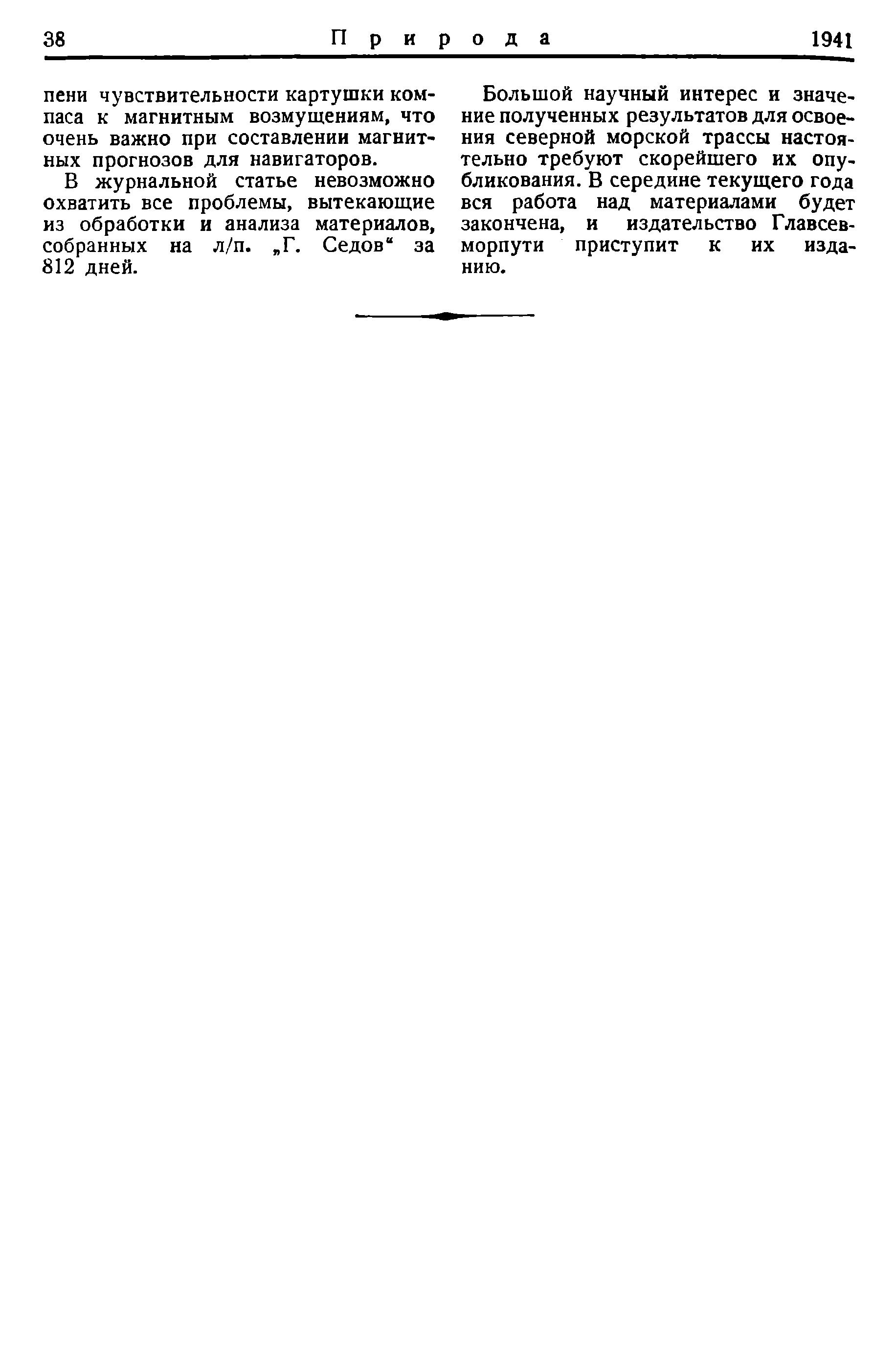 Большой научный интерес и значение полученных результатов для освоения северной морской трассы настоятельно требуют скорейшего их опубликования. В середине текущего года вся работа над материалами будет закончена, и издательство Главсевморпути приступит к их изданию.