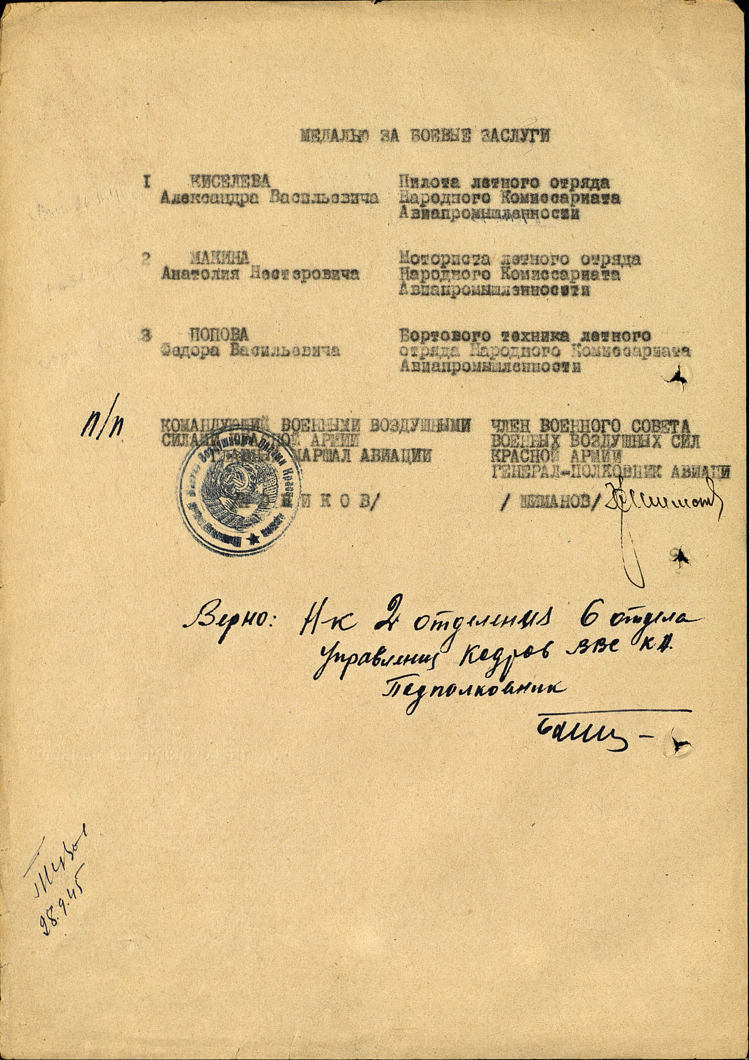 Александр Николаевич Тягунин, а штурманом — Иван Тимофеевич Спирин. В состав экипажей других кораблей первого отряда входили: командиры Анатолий Дмитриевич Алексеев, Василий Сергеевич Молоков, Илья Павлович Мазурук и вторые летчики Александр Александрович Курбан, Георгий Константинович Орлов, Матвей Ильич Козлов.