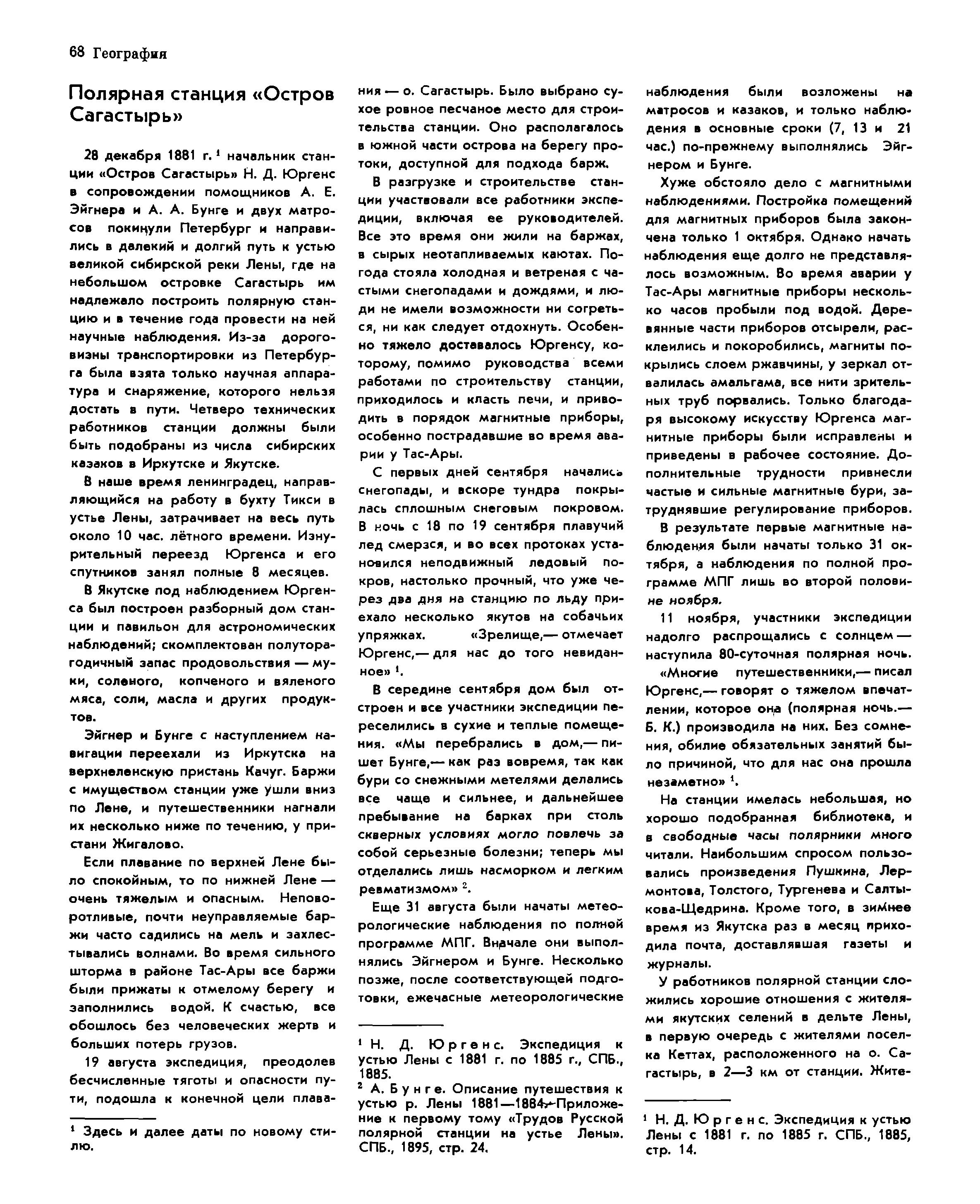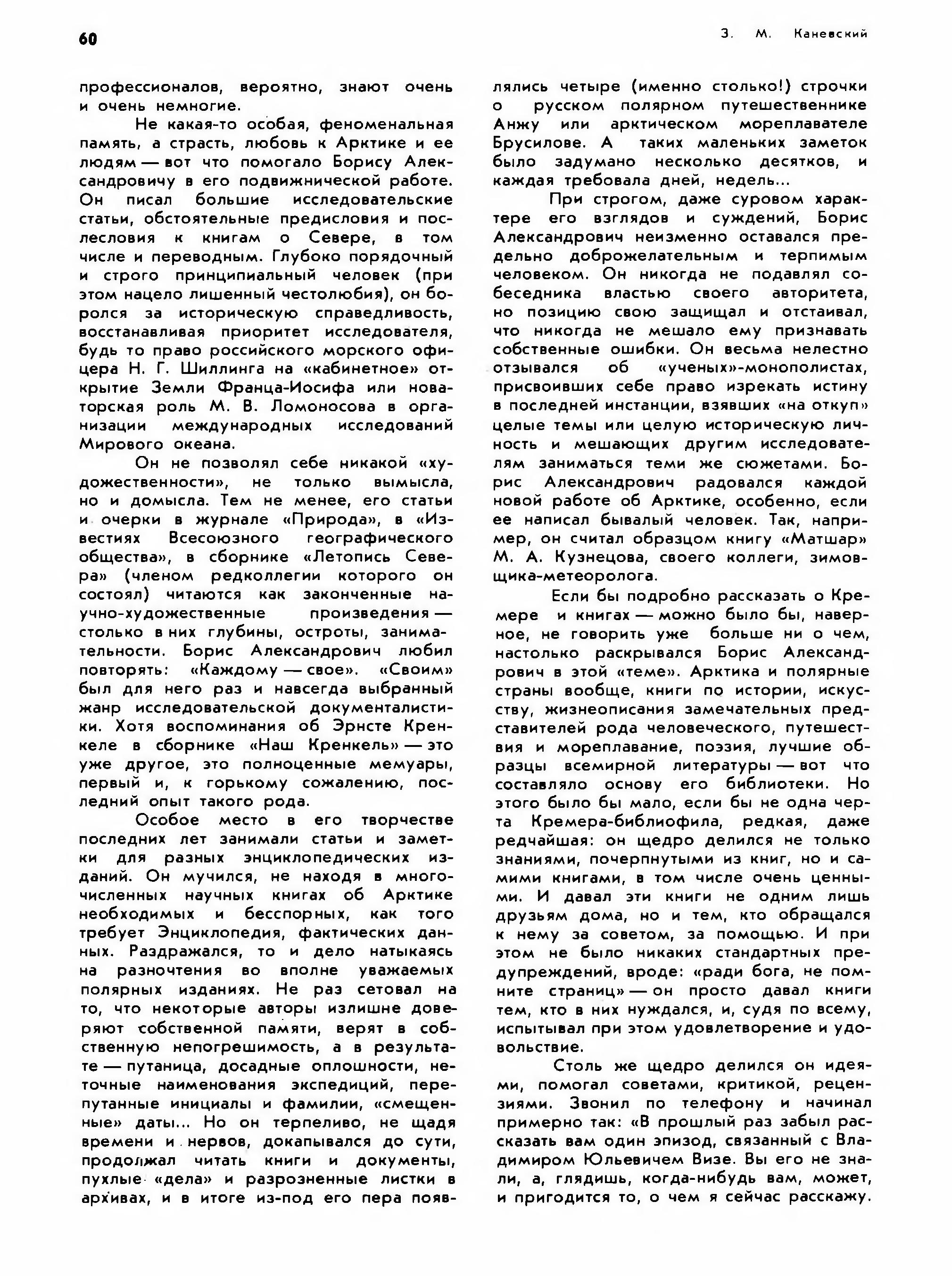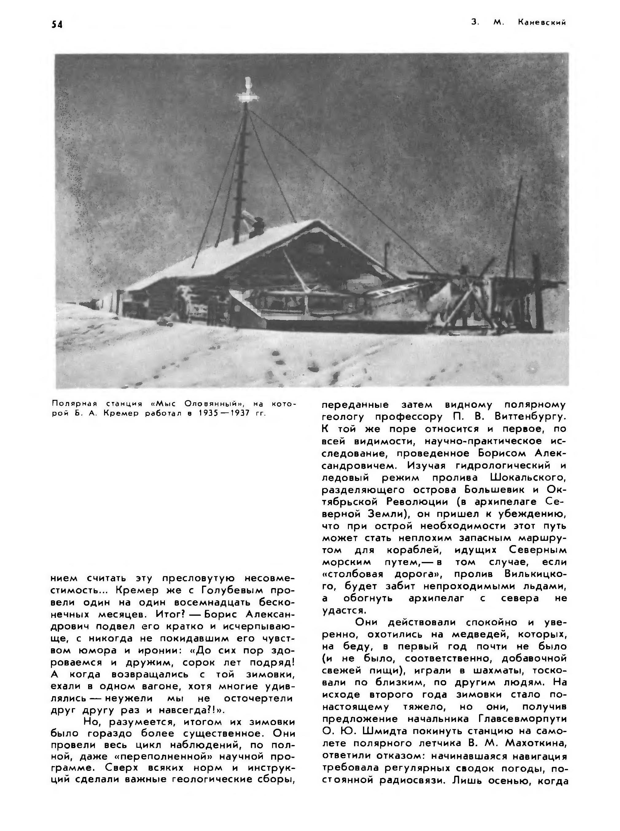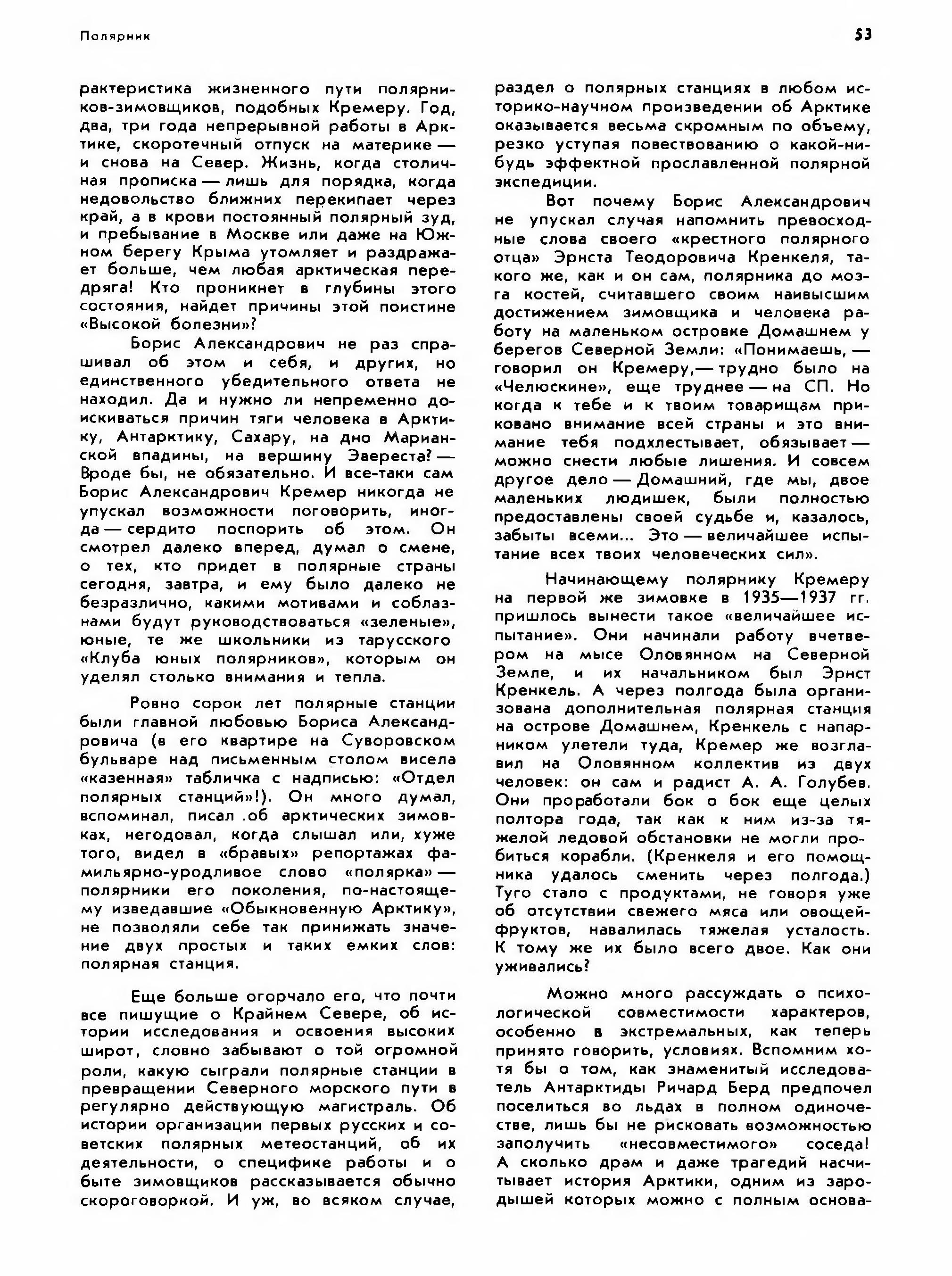{1} «Природа», 1973, № 5. Б. А. Кремер также опубликовал в «Природе» статьи: 239 дней на ледяном острове, 1969, № 8; По нехоженой земле- 1970, № 2; Первые полярные станции. 1974, № 6.