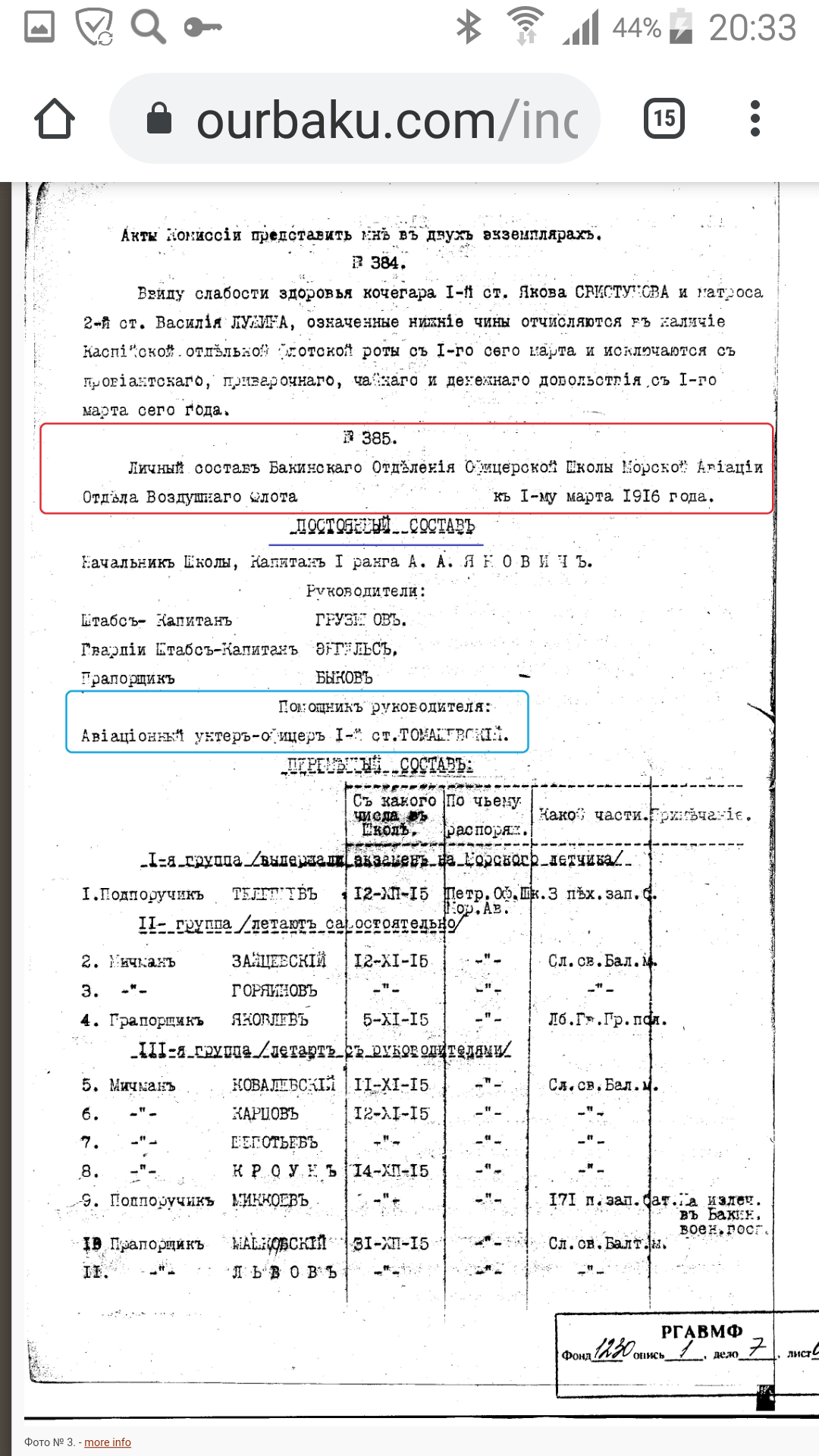 «В дни Уфимской операции(июнь 1919 г.) летчики совершили за неделю 113 боевых вылетов. Особенно отличились военлеты Аполлинарий Томашевский, Иван Савин, Артемий Коваленко, Андрей Казенной, Иосиф Железное, Александр Кравцов, Михаил Шпак, Сергей Байер, летнабы Казимир Жакевич, Леонид Петров, механики Алексей Миронов, Василий Ленкин и другие авиаторы. Многие из них были награждены орденами Красного Знамени.»