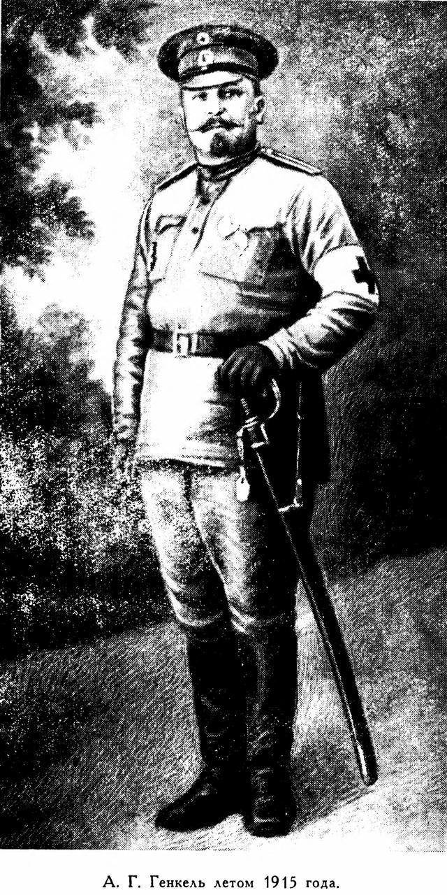 À. î\ Генкель по своей природе был настоящим альтруистом и всегда больше думал о людях, чем о себе. Он был человеком передовых взглядов, что мешало ему в его служебном продвижении при царском строе. Он был мужественным человеком и, будучи противником империалистических войн, в 1915 и 1917 гг. выезжал на фронт от санитарной организации. Так он использовал свои каникулы в военное время.