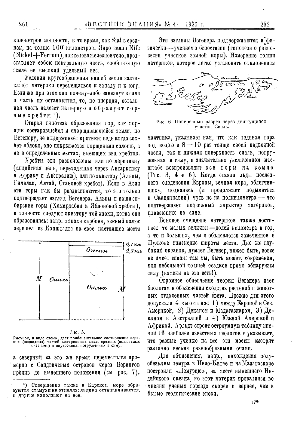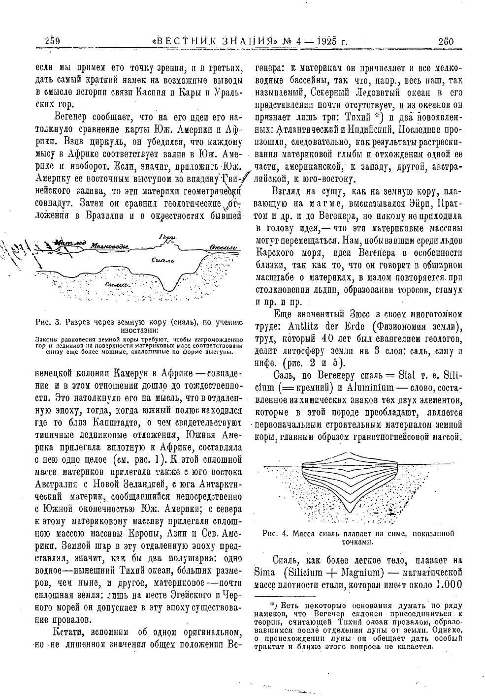 Проф. А. Г. Генкель. Революция в геологии (теория А. Вегенера о происхождении материков и океанов). С 8 рисунками// Вестник знания №4 1925 с.257-264