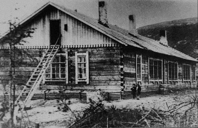 Первым, кто нас случайно встретил при спуске к культбазе, был ученик Гоша Романов, который катался с горки на лыжах. Потом мы пошли к школе, где увидели заведующего интернатом Ивана Ваганова и учительницу Матрену Григорьевну Яхонтову, которые очень доброжелательно проводили нас вовнутрь, поместили в большую комнату с железными кроватями и тумбочками. В столовой нас покормили, дали отдохнуть, а потом постригли и отвели в баню.
