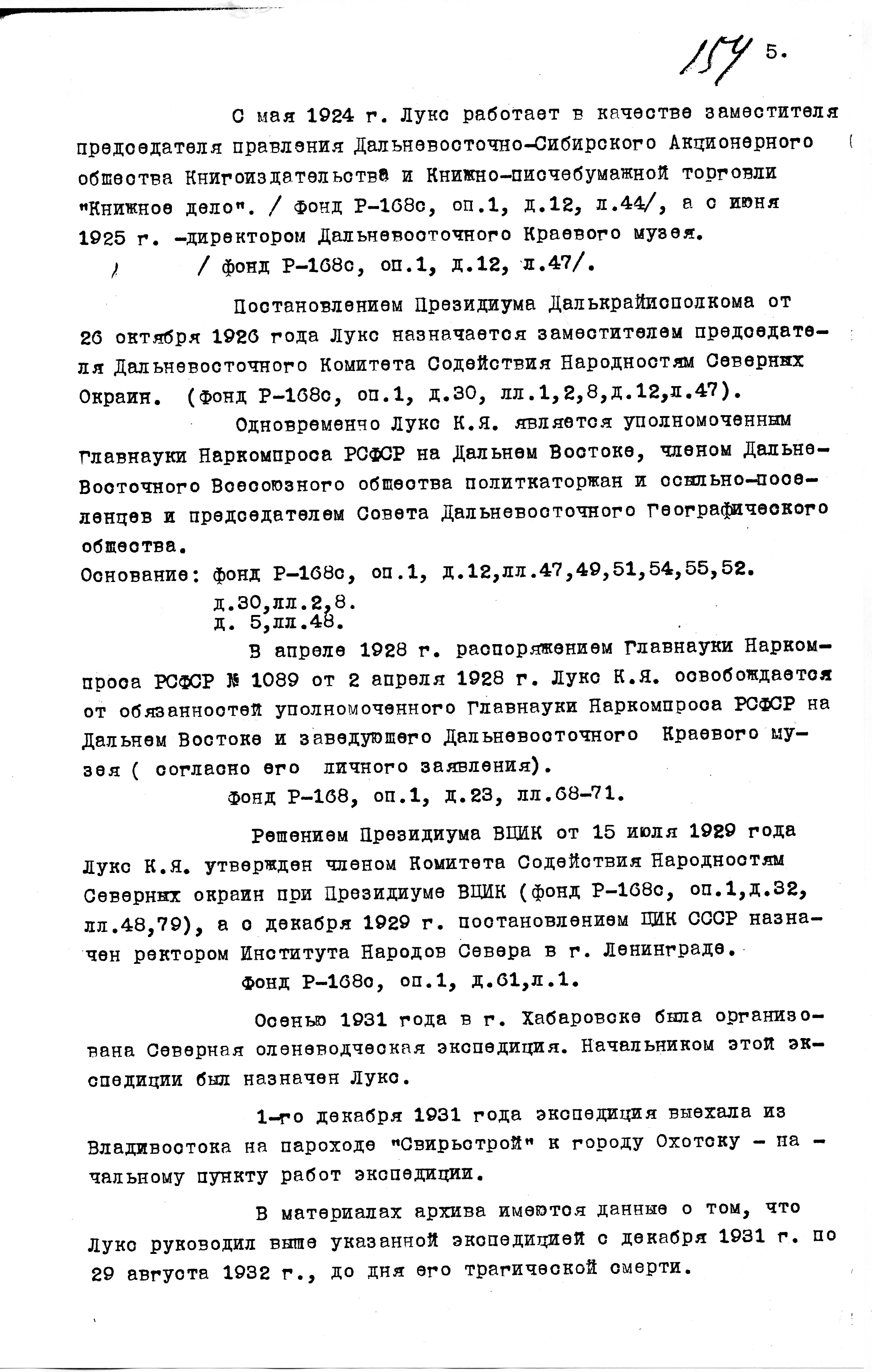 4. Лукс К. Я. Автобиографическая справка (исправленный вариант). Б. м., б. г. 6 с.