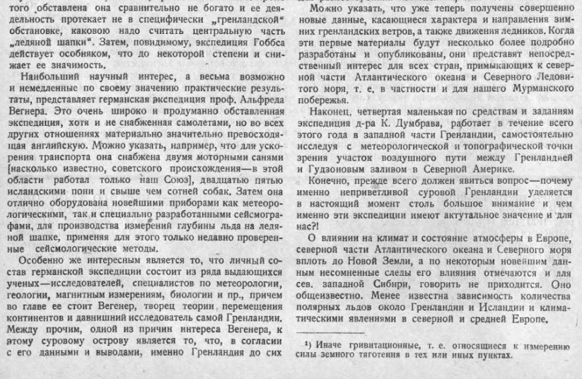 Одна из таких экспедиций, состоящая исключительно из ученых, организована немецким профессором Вегенером для исследования и изучения Гренландии.