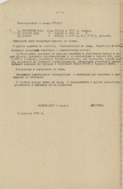 В члены ВКП/б/ я был принят в октябре 1929 г. парторганизацией 66-го Отдельного Авиационного Отряда ВВС Балтийского моря.