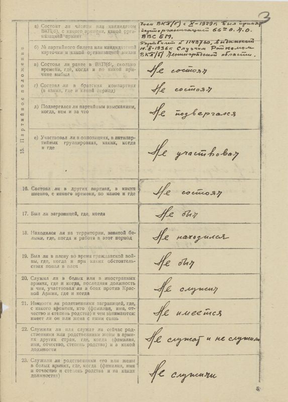 С врагами народа связи не имел. В троцкистских и других оппозициях не участвовал и взглядов их не разделял.