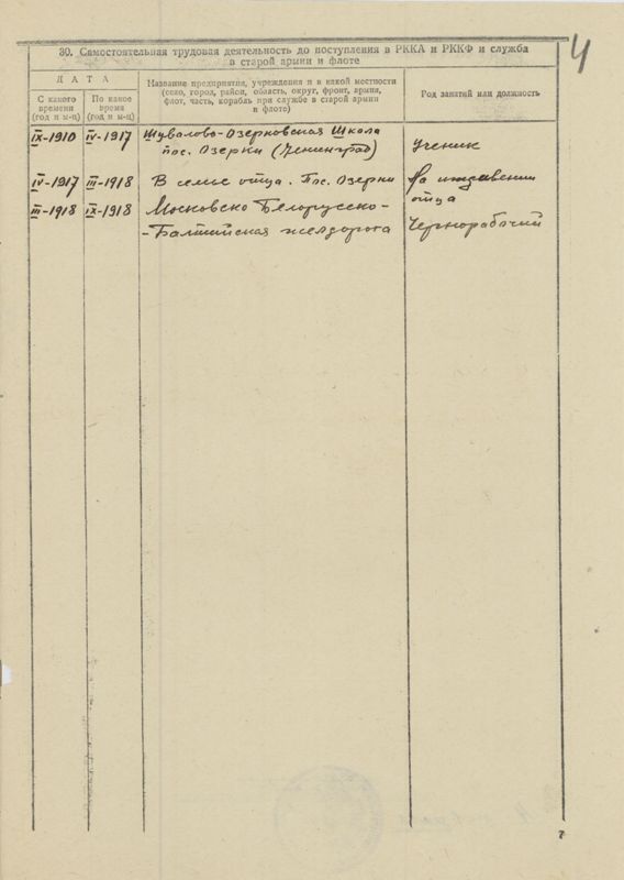 4. Работа, служба и участие в общественной жизни после Февр. революции и до поступления в Красную Армию /флот/.