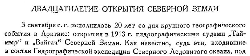 ДВАДЦАТИЛЕТИЕ ОТКРЫТИЯ СЕВЕРНОЙ ЗЕМЛИ