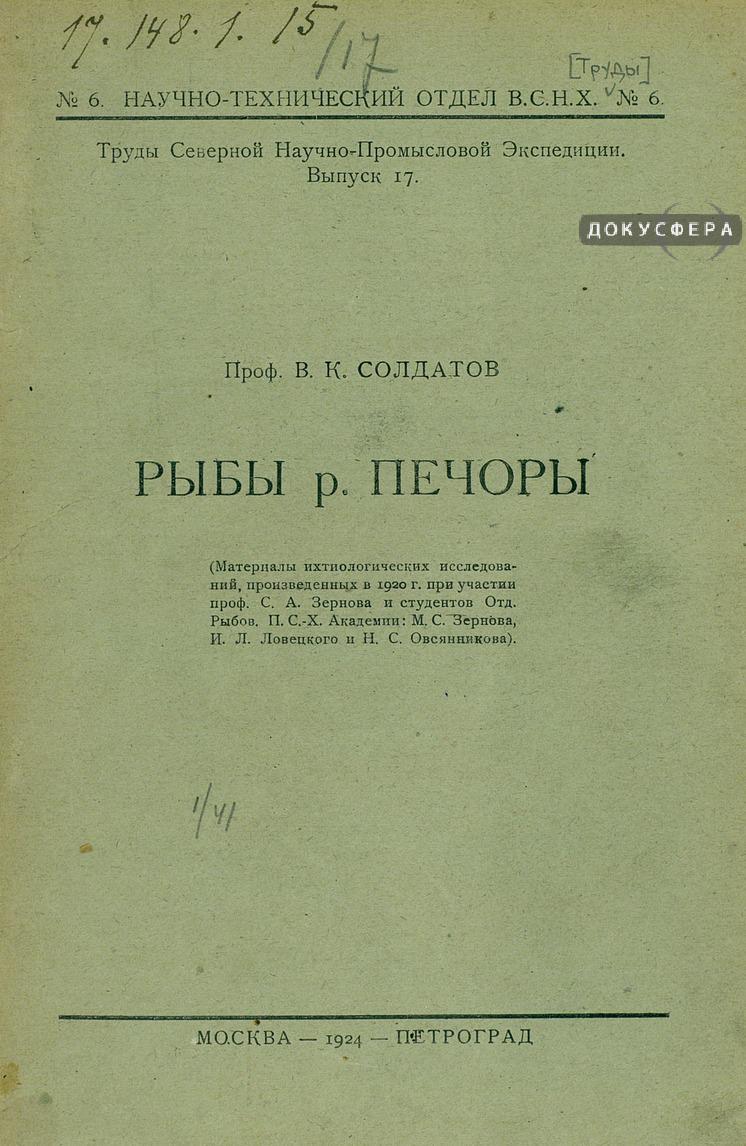 В. К. Солдатов родился 3 (15) июля 1875 г. в г. Верхоленске (в настоящее время Иркутская область). В 1907 г. он был направлен Департаментом земледелия на Дальний Восток для изучения рыбных ресурсов. Ему удалось организовать Дальневосточную экспедицию, которая в период с 1907 по 1913 г. круглогодично проводила исследования по биологии основных промысловых рыб (в первую очередь лососевых и осетровых) в бассейне р. Амур. Результаты этих научных работ опубликованы в монографиях «Исследование биологии лососевых Амура» (1912) и «Исследование осетровых Амура» (1915), которые специалисты справедливо относят к классическим произведениям научно-промысловой литературы. Владимир Константинович является основоположником научно-промыслового изучения дальневосточных лососей. Еще в те годы, когда уловы этих рыб были достаточно высоки, он призывал регламентировать их промысел и компенсировать его негативное воздействие искусственным разведением лососей. В 1909 г. по инициативе В. К. Солдатова на мысе Большой Чхиль построен первый как в бассейне Амура, так и на всем Дальнем Востоке рыбоводный завод для искусственного разведения лососевых рыб.