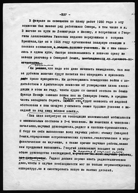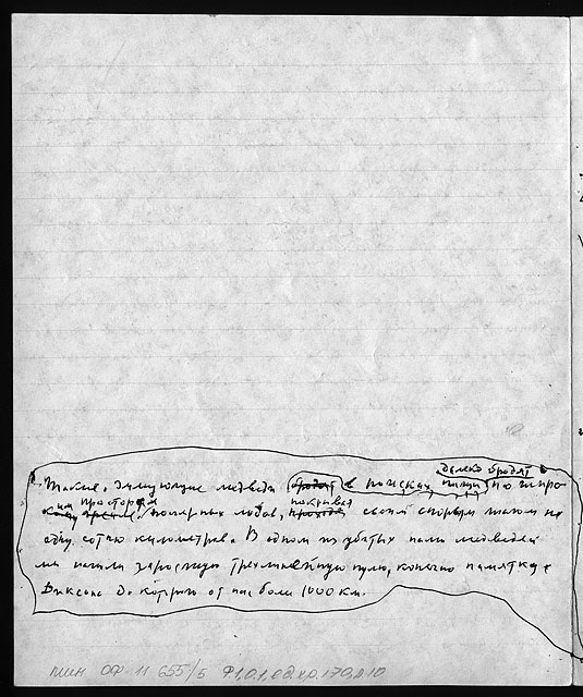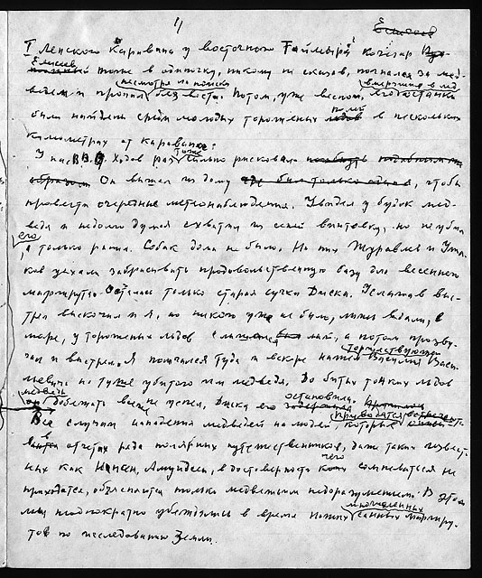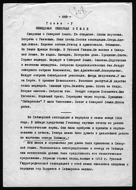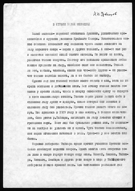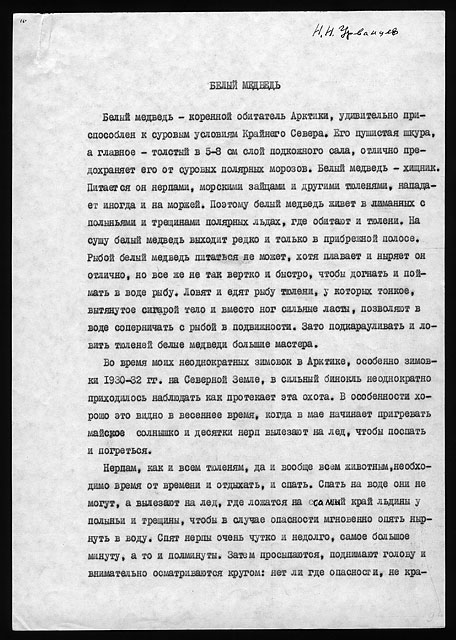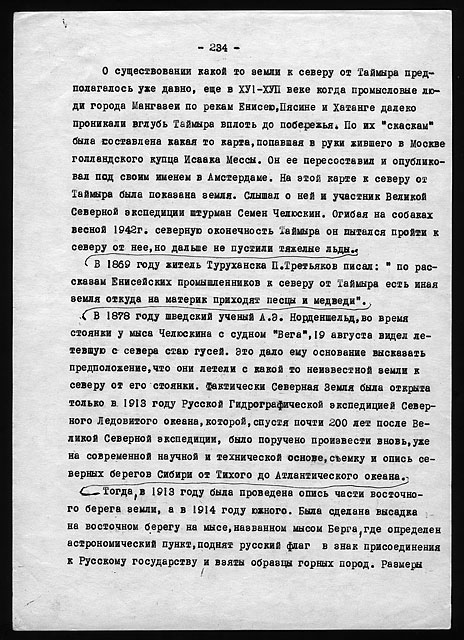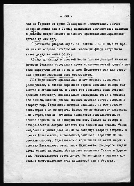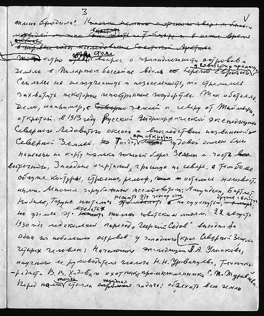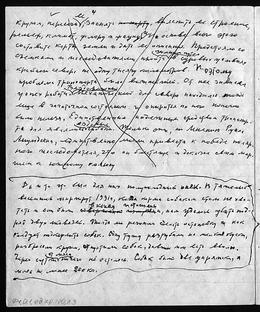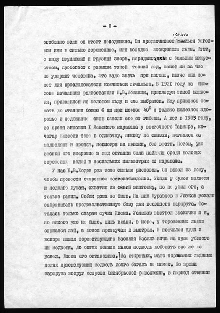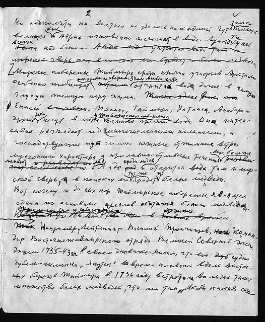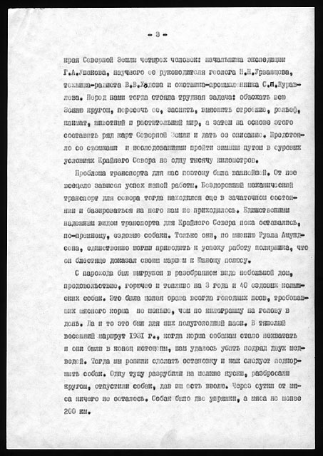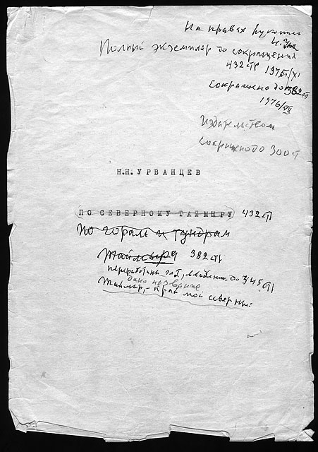 Примечания: Сведения об экспедициях Н.Н. Урванцева по Таймыру с 1919 по 1940-е годы. Рукописный текст на тетрадных листах в линейку, сложенных вдвое. В тексте авторские поправки.