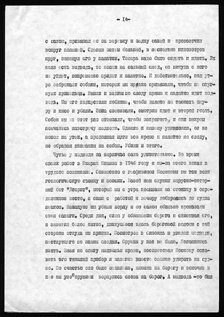 В середине 50-х годов в институт из Норильска вернулся Н.Н.Урванцев. Я впервые увидела Н.Н.Урванцева в 1952 г. в геологическом управлении Норильского комбината. По коридору прошел высокий худощавый, чуть сутулый мужчина в ватнике, ни с кем не здороваясь и не останавливаясь. В.Н.Сакс сказал мне, что это Н.Н.Урванцев, фамилию которого вычеркивают из всех работ. Позже он рассказал мне о Николае Николаевиче подробнее. Сотрудников в институте было много – сидели в кабинетах весьма скученно. Николаю Николаевичу хотели создать более благоприятные условия и предложили ему место в кабинете рядом с первым отделом.